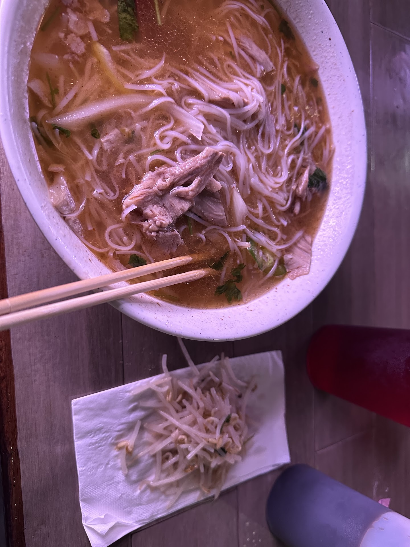 Read moreI’m a pho connoisseur and this was not pho. Was very greasy and salty. Tasted more like beef broth nothing more. I travel the world and have had authentic pho and have found many places around that uses the aromatics that go into pho. This is perfect for those who don’t like traditional pho. I wish I knew there was bean sprouts in it as well. Yes this was my 1st and my last time I will be eating here. I told the lady the bean sprouts upset my stomach and all she replied with was “our pho comes with all the vegetables in it”, then walked away. I proceeded to pick them out. I only ate about half but couldn’t stomach it. I was really hoping for a pho place close to me but this one I’ll pass on. Now if you like beef stew you will love their pho flavor. Just not for me. Also my tea was almost clear, and tables were dirty and this was at opening and no...