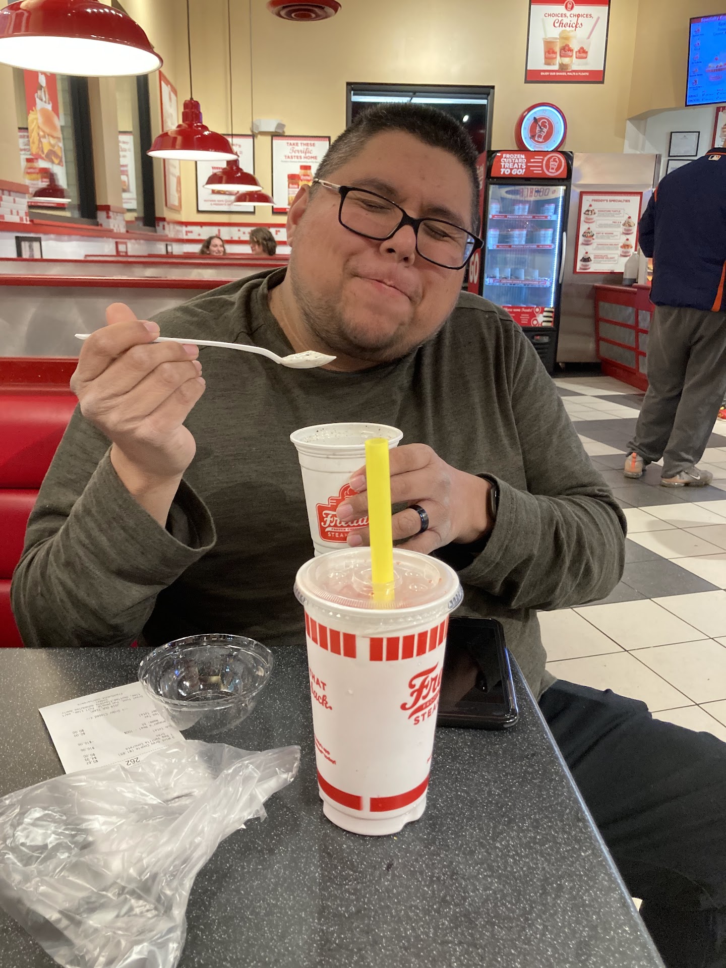 Read moreThis place has to be going through growing pains. There were so many employees they were not only crawling over each other but taking up space in the dinner for their breaks when customers who were standing could have enjoyed their completely smashed meat gristle and untoasted bun burger. One employee who wasn't even working a register was able to inform me on how the menu worked, after the employee at the register completely destroyed my order. Great training there guys. After crawling over the employees to get to a register I decided to try the drive through.... 30 minutes later my order for a shake and a malt was taken. Yes I went to both inside and the drive through to give the benefit of the doubt. Nope it was all doubt, I was told the shakes aka custard was where it is at... I am not impressed at all. I saw there was no lead manager working tonight and if I just opened up a new restaurant in this area I would be there open to close to make sure this bad experience does not happen for the customers. I will come back in a month and hopefully the 50 off duty employees who are not needed taking up space will not be there and hopefully the food will be better because it is not worth waiting for. At current I would rather have the horrible service at Steak and Shake because at least their food and shakes taste much...