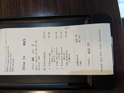 So....Only take out/delivery from now on from Little V. That's my recommendation. But I think In this economy, a buffet is more bang for your buck! One $ entree = $ buffet 🤷especially if you're tired of staying at home. Delivery is this...