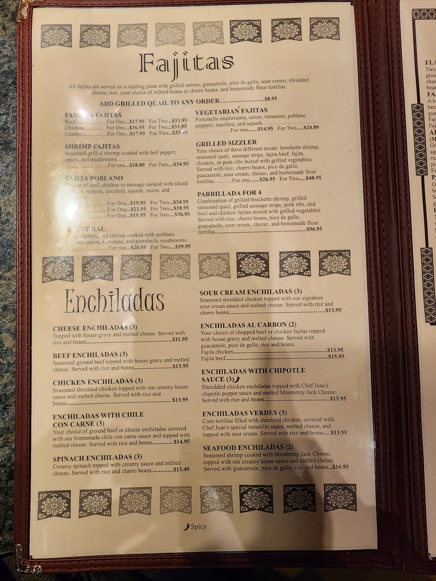 Read moreMexican food in Texas usually falls into 2 categories. Authentic or Tex-Mex. This restaurant does not fall under either category. I got the enchiladas with Chipotle sauce with rice and charro beans. The rice was over cooked, mushy, and was covered in salt as its only seasoning. That "charro beans" were basically baked beans with tomato being its primary flavor profile. No cumin, cilantro, or other spices/herbs you would associate with this dish were prevalent. As for the enchiladas, the shredded chicken was dry as a desert. The Chipotle sauce tasted like they just took a can of Chipotle peppers in adobo sauce, threw it in a blender, and called it a day. It is obvious that there is no chef in this restaurant or there is one who doesn't care enough to serve quality food. We finished our waters before our entrees came out and did not get a refill until after we had been served our entrees. The establishment was very slow and there should be no excuse for terrible service like that. It appears that the "manager " was just standing around collecting a paycheck without a care in the world. He did not move 1 inch the entire time we were in there. He never checked on any tables. The sad part is that this restaurant has a beautiful ambiance and amazing location. They had such a stunning set up inside the restaurant. Tables and bar were beautiful. They have the tools to set themselves up for success with these, but have been failing to do so. Will try again in the future to see if they make any improvements on their current lack...