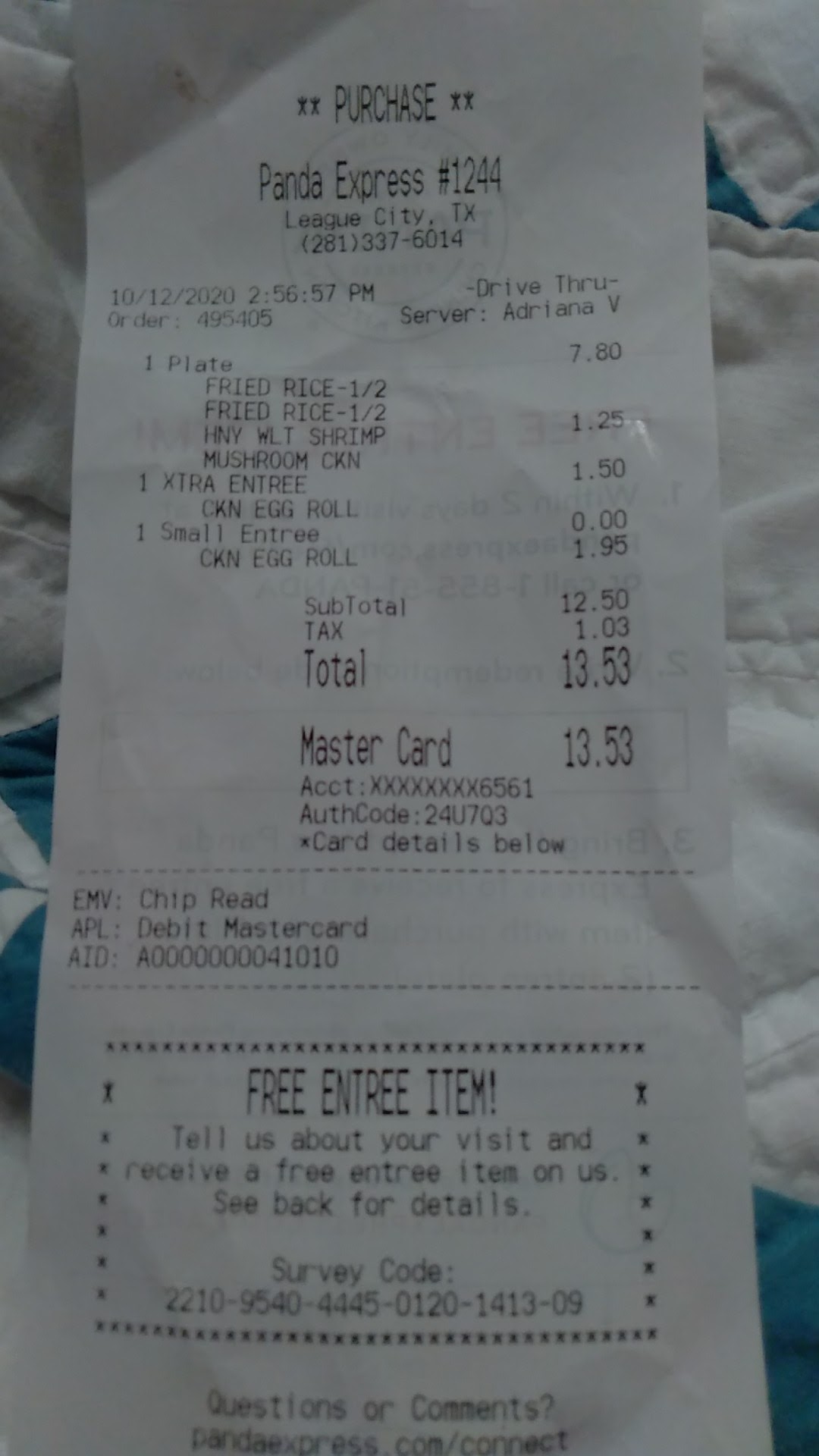 Ā Ā Ā Read moreI LOVE Panda Express! I have to admit that I usually order in the app and then pick up my food. I donāt have a lot of experience dining in the restaurant. However, when I pick up my food in the drive-through, I know that I am in for a treat. If you have not eaten their teriyaki chicken, then what are you doing with your life? It is so healthy and fresh. It is basically just chicken that is grilled and then they slice it. Itās up to you if you want to add the sauce. It takes away the healthy aspect but it is so delicious! I wish they sold it in bottles. I also love their mushroom chicken and their chow mein. My dog loves their fried rice, so I usually get him a carton of that. I really donāt eat fast food, but this is the one place I donāt feel bad spending my money. You can actually eat very healthy and all of the vegetables are super fresh. The employees are very friendly. I am including a picture of Teo⦠the friendly drive-through employee at the League City location located at I 45 S. and FM 646. Just to eat...