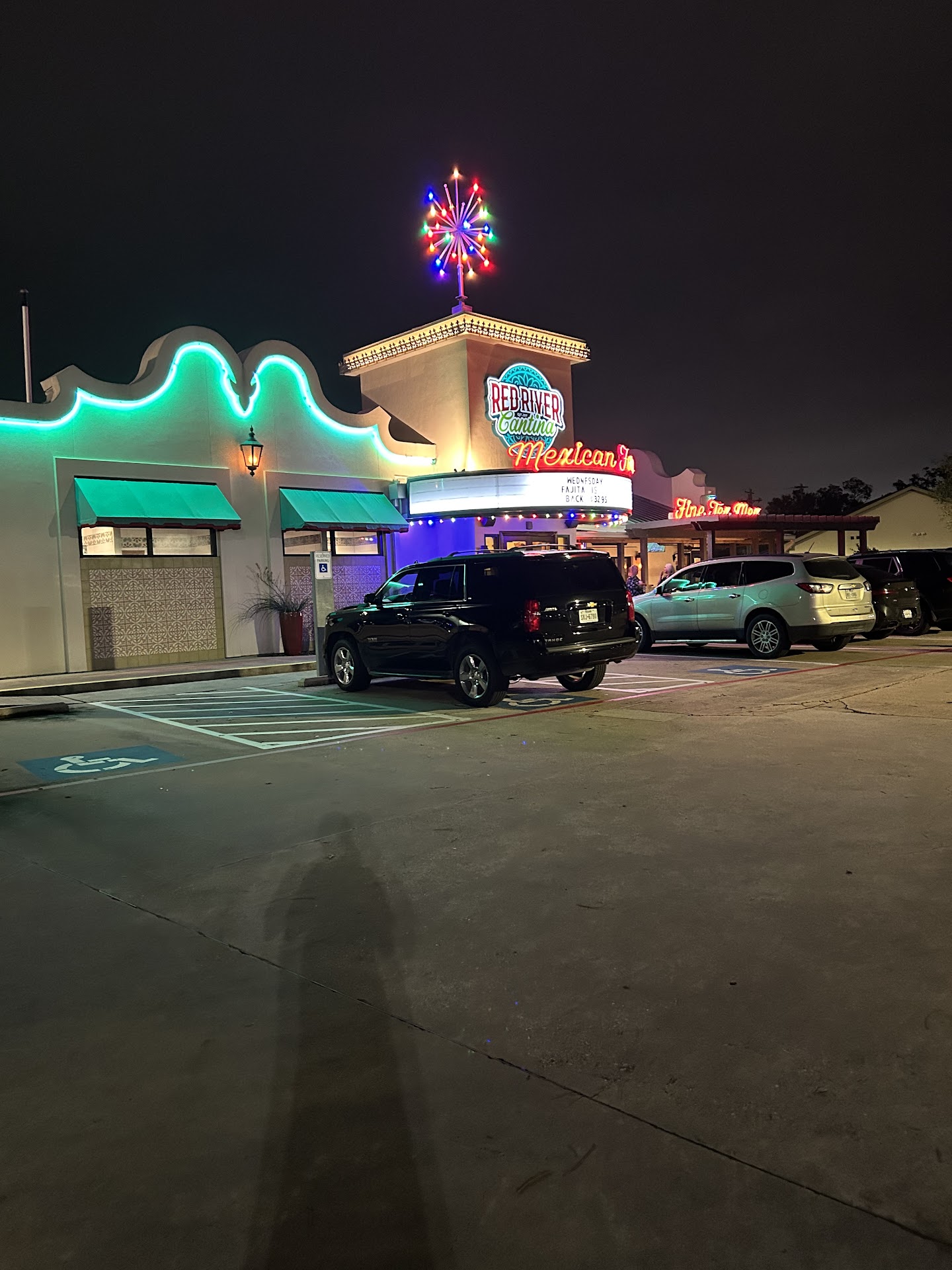Read moreRed River Cantina has been one of my favorite restaurants for a while now. It has lots of available seating, and the interior is decoratednicely, with lights strewn along the ceiling, antlers on the wall, and plants in elaborately detailed pots. The service here is great, and our waiter tonight was very friendly and helpful. After ordering our food, we didn’t have to wait long, and the food came out much quicker than usual. The food here is delicious and filling. I ordered the Brisket Enchiladas, two enchiladas filled with warm brisket and topped with sour cream, a subtle barbecue sauce, and chopped-up avocado. The sauce combination is surprisingly sweet, and it mixes perfectly with the brisket. My little brother ordered the kids cheese quesadillas, which he said tasted good. However, he was not pleased with the charred dots on his tortillas, a feature generally enjoyed by most people but a possible disappointment for younger children. The chicken fajita quesadillas are one of my favorite dishes, as they are very cheesy with chunks of chicken inside the warm tortillas. I was sad to learn that they replaced their combos with a system of choosing different dishes to form your own combinado. There used to be a dish that only cost $18 called the Monterrey, which consisted of two enchiladas plus three cheese quesadillas (and rice and beans, of course). Sadly, they removed this menu item, but there are still many delectable meals that you can eat. One great feature of the restaurant is that the salsa is always warm, contrary to the usual cold salsa. They also bring out a tasty green sauce upon request, in which you can dip the warm, crunchy chips. Overall, this is a restaurant that you must try, and don’t forget to grab a mint on...