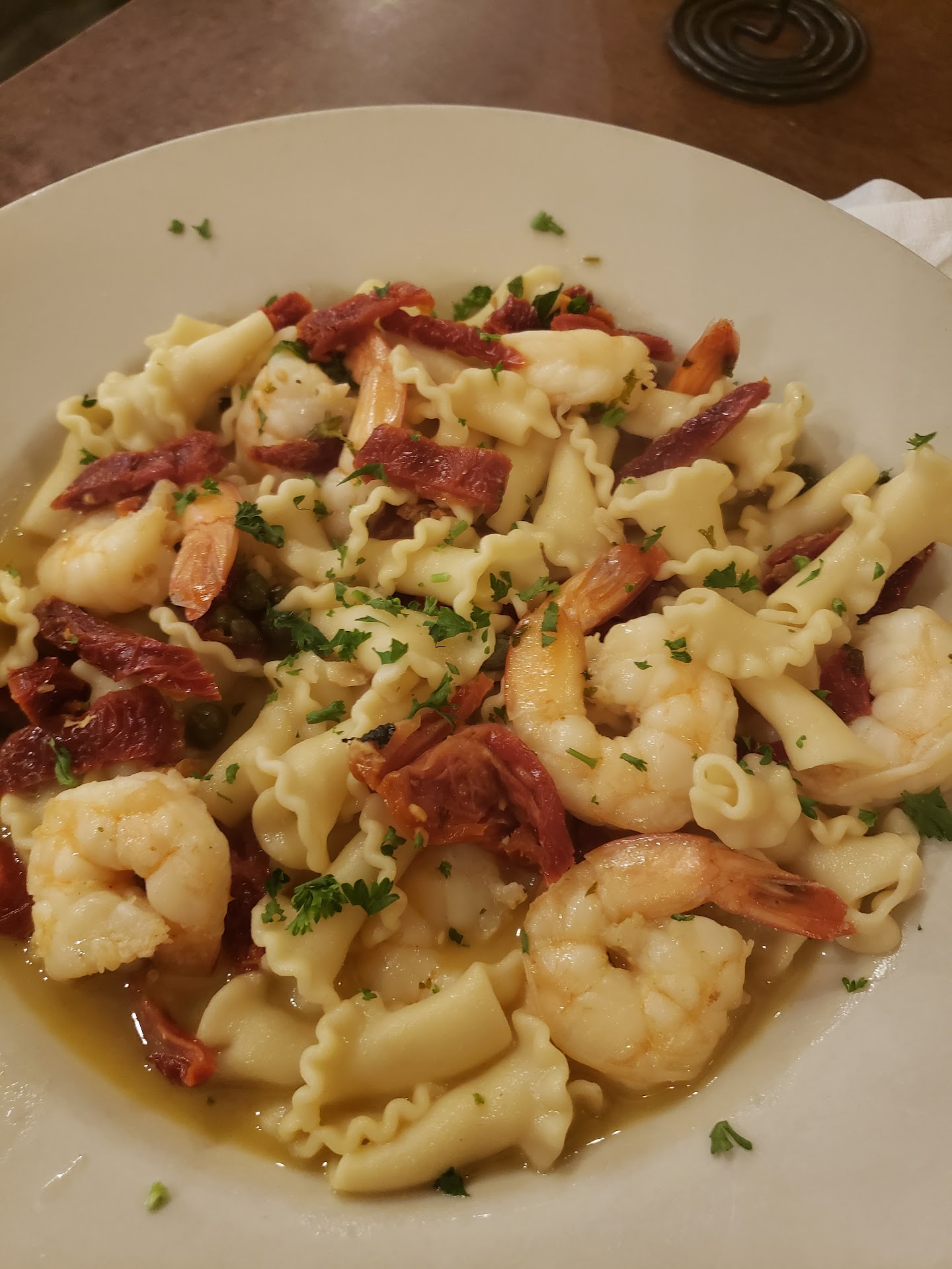Read moreHere on vacation and the Little One wanted lasagna. I didn't want to go to a chain restaurant that we have back home. I did a quick Google search and this restaurant popped up and had fairly good reviews. Our first choice was already closed for the night. We ordered fried calamari, side Ceasar salad, lasagna, and shrimp scampi. The ceasar dressing had way too much olive oil and there was so much dressing the lettuce was wilted. The calamari was very bland and a little rubbery but the sauce helped add flavor. It was still missing something, though. The lasagna was okay. The lasagna noodles was overcooked and the meat had an odd flavor like the seasoned beef you put on pizza or in a meatball. Wasn't terrible just not what we were expecting.The Little One ate the lasagna and her only comment was "It's different". The shrimp scampi was not good at all. The pasta was over cooked and was in some type of broth (assuming the lemon garlic white wine "sauce") that was very bland. The sun dried tomatoes and capers did nothing for this dish. When I think "italian" I think strong robust flavors and the scampi did not have that. I left most of the scampi on my plate. Portions were big but I was disappointed at spending as much money as I did for the...