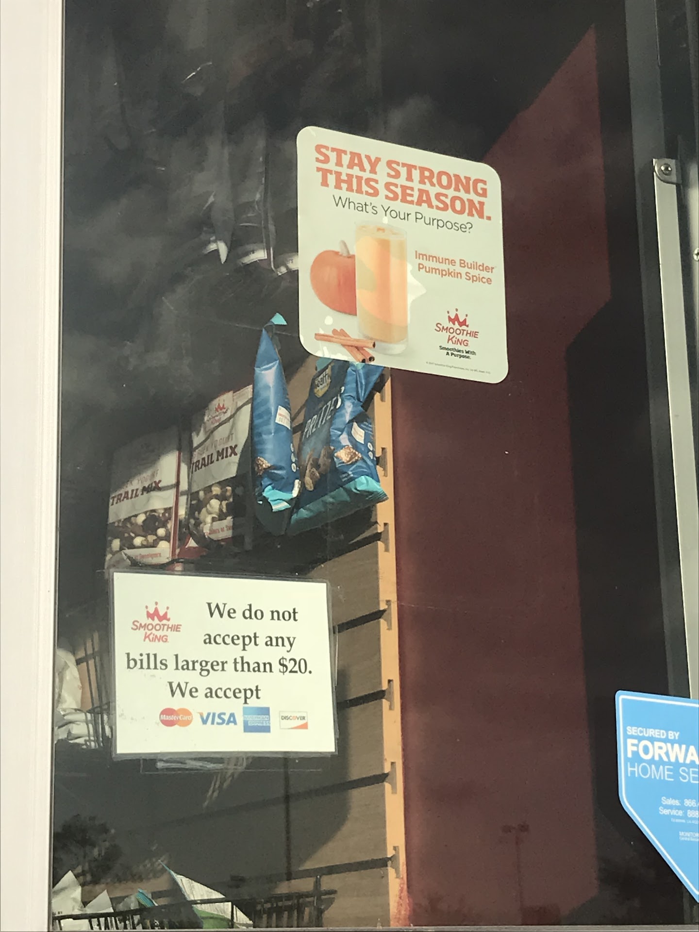 employees are friendly, but they are giggling the whole time and clearly paying much more attention to each other than you or the quality of your order. my smoothie took a while when there was no line and came out chunky and super short. I actually used to work at this smoothie king so I know sometimes you follow the recipe and it still comes out a bit short. This wasnât a bit short. This is like I didnât get my moneys worth. The picture attached is how I was handed the drink. I didnât take any sips or anything. It was also super chunky and icy. I worked for smoothie king for a while and now work at Starbucks and I would never hand out something looking like this. You either add some stuff and try to fix or just make again. I wouldâve said something about it at the time but I was on my way to work and the kid at the window didnât even like look me in the eye so I didnât feel I would get any help anyway. idk. maybe just remind your employees that at a certain point you gotta remake the drink you canât just hand it out at...