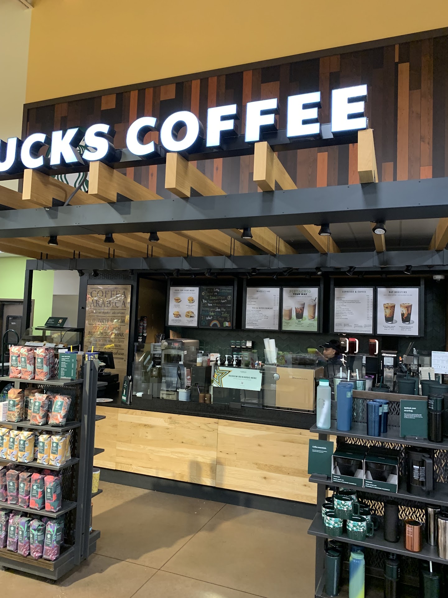 I have always really. Enjoyed the staff at this particular Starbucks. Very much they are friendly and the service. Is great period it used to be a gathering place for students. Be friends could stop in the morning or evenings and talk to each other and enjoy the place.. The new design is very cold.No atmosphere at all and defining because of the acoustics.Nobody can hear what anybody's saying. They have another issue that I wish they would fix. When they close during the summer, when everybody's out late. They close earlier. They close at 9 PM the other day. I was sitting out drinking my coffee and eating my snack in the car. Because they were close and 12 different people came through and actually they had a line waiting for service and it left the illusion that people were getting service because the people would wait at the box to order for a while, then drive up the window and stop, and everybody thought they were open. And the winter explosion at 9. May be okay, but in the summer is silly. It costs them a lot of customers. And then you designed the store where they no longer have the coffee and the cups and the things people used to like to go in and shop for and by it's just a different place and it's very cold by cold. I mean, the atmosphere is just sterile and you can't even see the people that were your friends.. This sounds like sort of an experimental design so they could focus on online orders and drive through only.I'd be really curious to see what it's really done to The profit margin. There is an old adage " If it is not broken don't fix it." It wasn't broken but it is now.I miss the old configuration.Although I like the staff still very much. If you want. Service and wrap it turn around of getting what you order and getting it right?This is the right...