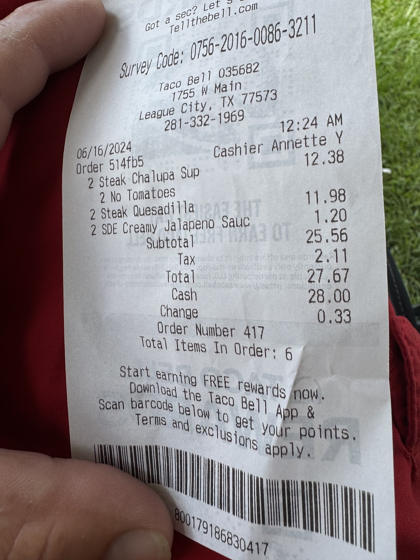 I looked at this man as if, “are you serious, right now?!?!” But I said, “don’t worry about it… this just shows how lazy Taco Bell has become…” and he said, “we’re just doing as we’re told…”