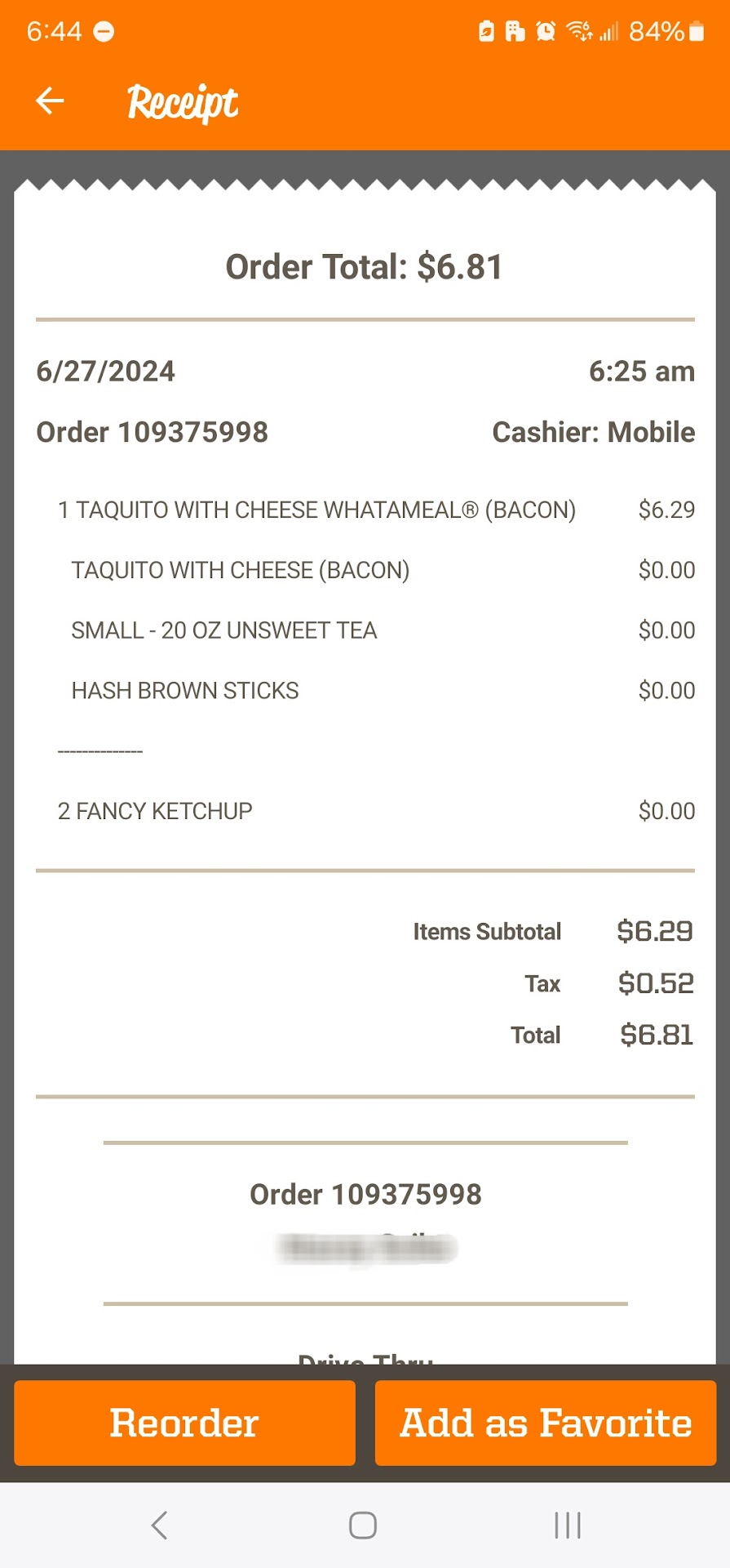 Read moreI hate doing this because I love Whataburger and this location is usually SO AMAZING but my experience today was just awful. I placed an online order and when I picked it up, I ignorantly took it home without checking it. So that's 100% on me. The fries were cold, limp...and just tasted like they were out for 4-5 hours and my burger was completely wrong. I went back and told them (and apologized like a weirdo because I always feel terrible when I have to tell someone they didn't do their job right). They gave me the new bag with a new burger and fries and I left. I checked that the burger was correct and it was STILL WRONG! But this time I ate it because whatever, but the fries? They were inedible. By inedible I mean they looked and tasted like they'd been thrown on the floor and kicked around. The first cold, old, batch was heavenly in comparison. I actually feel sick after eating. I'm not sure if whoever is working tonight has a personal vendetta against people who ask for their food to be correct but I'm just sad about this. I am sad because I love this location 99% of the time. The drive thru line was around the building - nearly into the street and I saw them dropping fresh fries into the deep fryer, there is no way this was by mistake. It was 100% intentional and I wish I knew why they think it's okay to punish people who very politely ask for a correction. I really hope this doesn't become a regular thing here. I did file a complaint so if the issue is corrected and I return with a good experience (which I usually have at this location), I'll...
