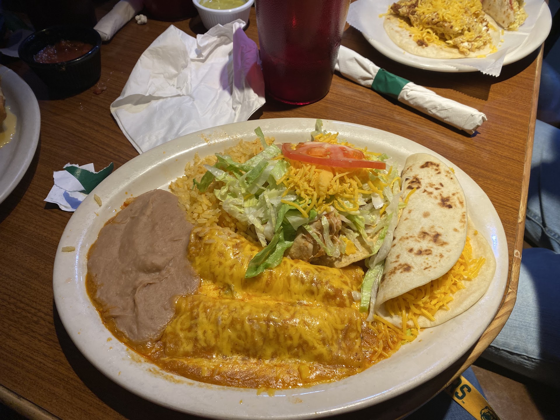 Read moreWe are only in this area a few more nights and we all got the taste for some great south of the border food. Don't get me wrong we all know there isn't any authentic "Mexican" food this far north of the border due to water differences and ingredient differences but we do expect the at least great service and a righteous meal....but tonight that's not what happened. We arrived around 6:40 p.m. and the restaurant was nearly empty so we grinned thinking we had it made..... again that's not what happened.... Our server seemed to be a new and inexperienced so we went slow and easy while ordering to make sure she got everything written down and then had her repeat the orders which she did so once again we thought we were good...... again that's not what happened....... We had a party of seven and the simple things should have been a glimpse of things to come... First she gave us a small ramekin of salsa along with a half basket of chips and as she was walking away we asked for another full basket of fresh chips and at least two more ramekins of salsa along with some cheese, beef and Guacamole dip.... She brought the salsa but no chips so we asked again for more she smiled and said ok.... the hot dip came and once again we had to remind her about the chips. She finally brought the chips along with the drink order and that was a fiasco...seven drink orders and only three were correct.... Our dinner order went in and she managed to get six of the seven right...... but...... she brought five of the seven dinners out ten minutes before coming with the remaining two.... By this time the restaurant had filled up nearly 80% so all the staff were running. Our friends that live here in Leander, Texas were apologetic for bringing everyone to this place swearing they've never had food service like this in all the meals they've eaten there. The food actually had a decent taste but due to all the troubles we went through we...
