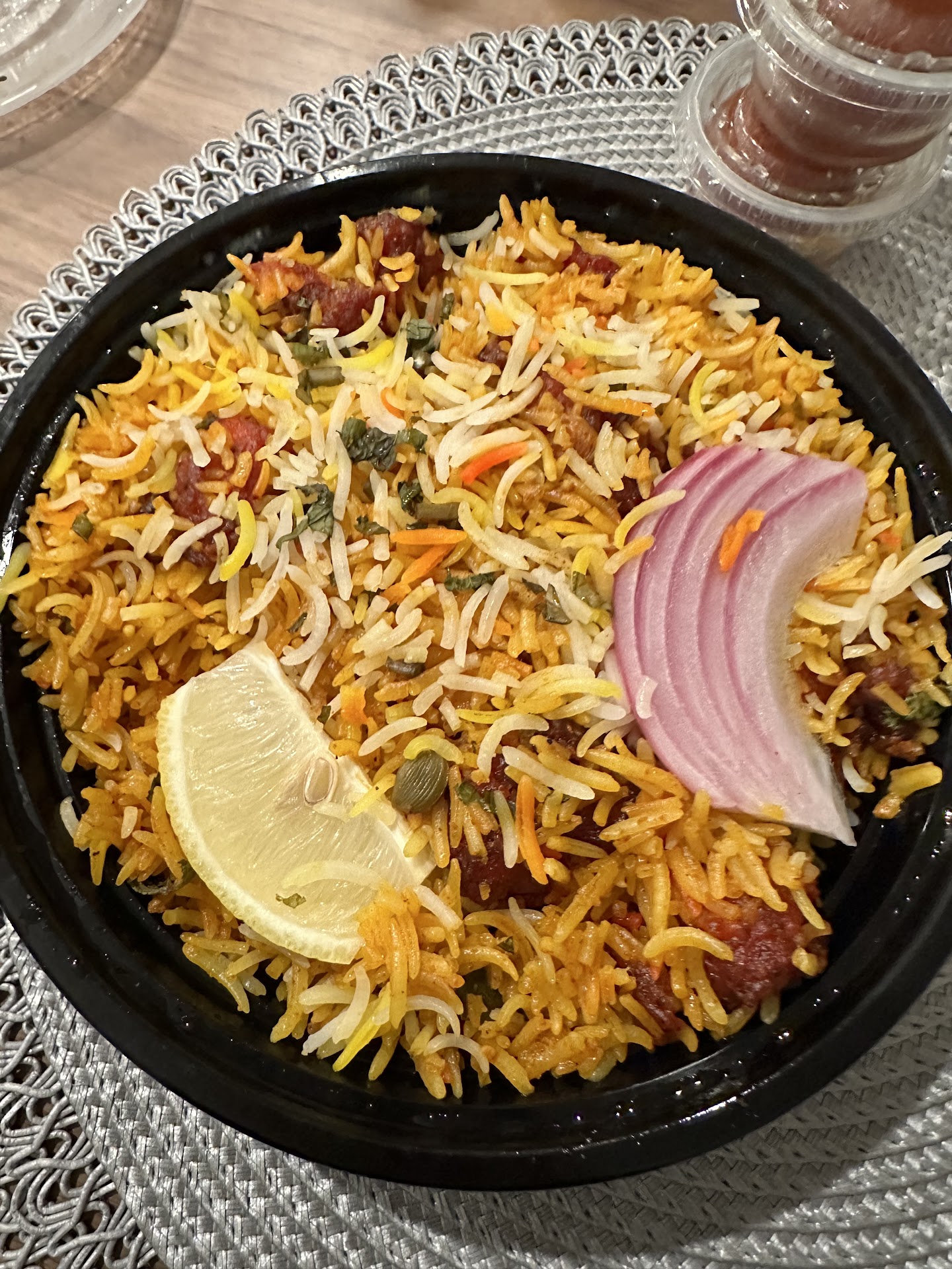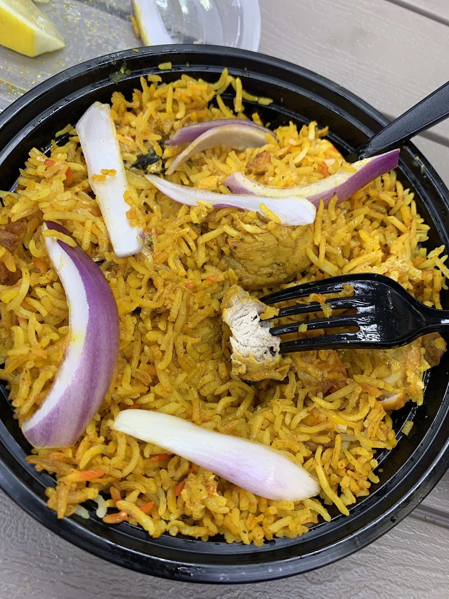 I ordered through Uber last night and said none for spice and received extremely spicy dishes and it was GRITTY!! Like I was eating dirt. I have a lamb biryani and a fried rice I won’t touch and the two dishes I opened are partially eaten as I had to stop eating thinking I’m eating dirt. I also felt I was served old meat, the chicken and lamb was terrible dry hard lamb hidden under rice (just looked like a pile of rice) and the chicken was the same. It was so bad I had to look at when this place closed to see if I ordered close to closing time and pissed off the cook.