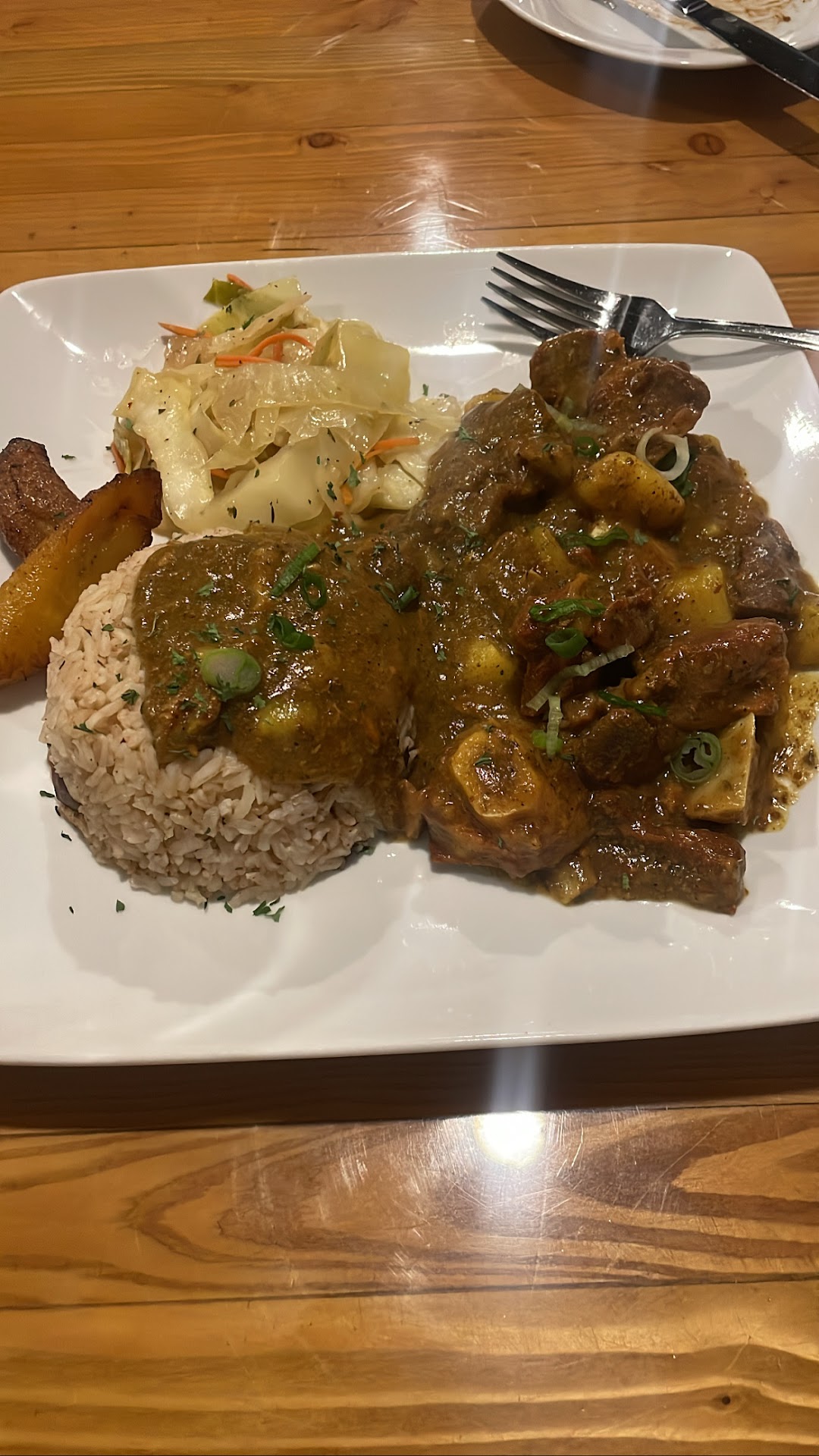 Second visit, Kingston Fried Chicken had crispy chicken skin but also very moist inside and a WONDERFUL taste!!! Cabbage and plantains are a great addition to the plate.