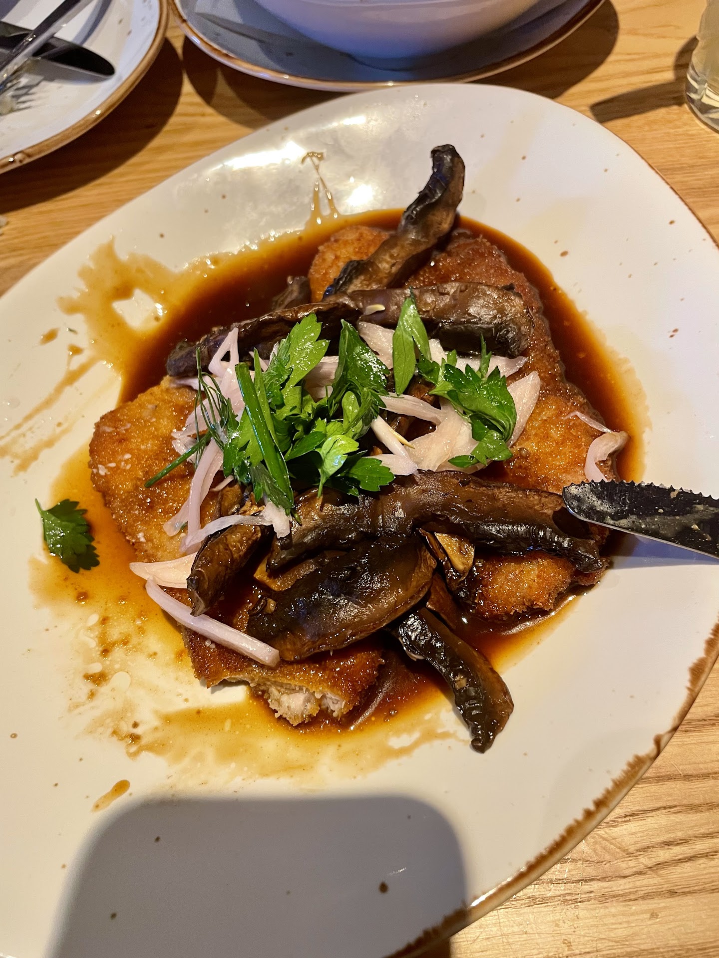 The schnitzel was the highlight of our meal. It was flavorful and still crispy, even with the rich sauce and mushrooms poured over it. The combination worked perfectly. The other dishes were interesting but didn’t leave much of an impression—unique for first-timers, but not something we'd go back for. The drink, while refreshing, was also nothing extraordinary.