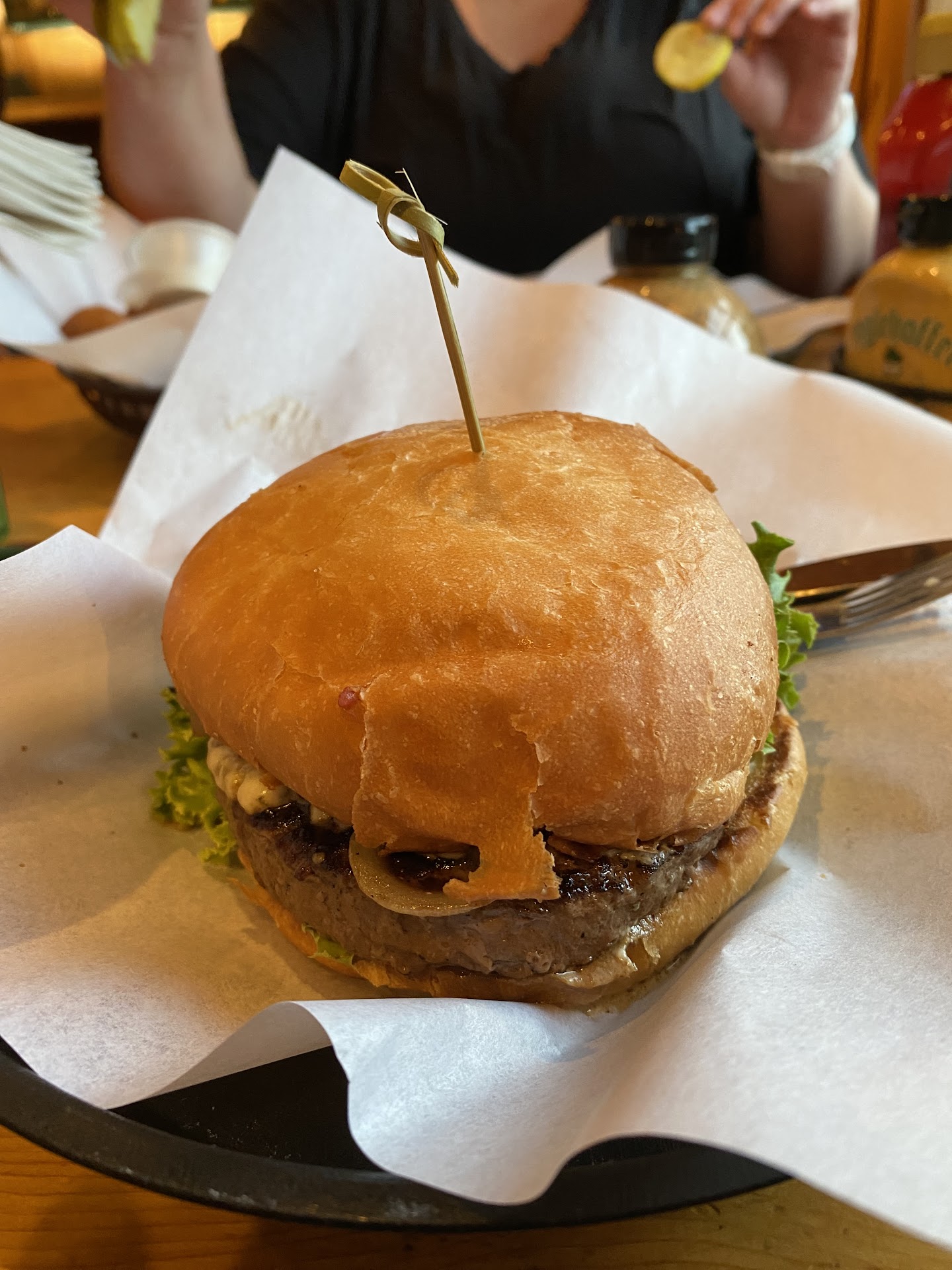 Gustav's is one of the first spots you’ll notice as you enter the market area in Leavenworth, and we were excited to try their vegetarian options. We were particularly interested in the Garden Ortega Burger, and ended up ordering three of them.
