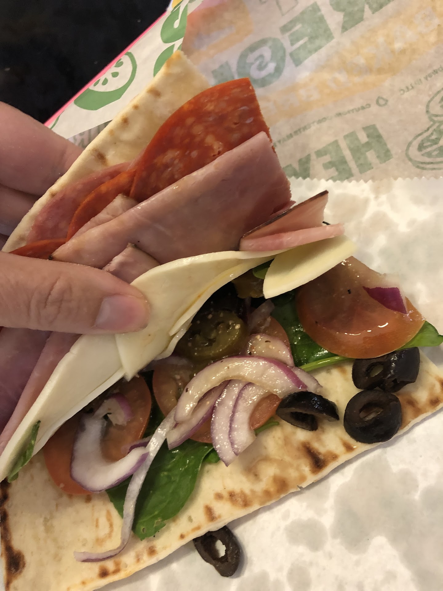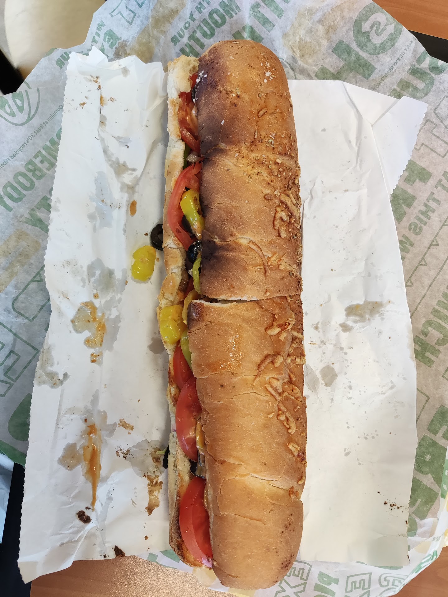 Read moreWent in for dinner. No staff anywhere in sight. Waited, and a girl came out from the back eating food, wiped her mouth with her hand, at least washed her hands before prepping our food. She asked my daughter 4 times what she wanted, then when my daughter repeated the same thing for the 4th time, she told the other staff member that she needed this sandwich, not toasted, we get asked again by the new staff member what we ordered. 5th time the start of the sandwich was made. Mind you the ingredients of what she asked for were literally in the description of the sandwich, and she told them exactly as written, but again, had to repeat herself. The staff member got to my order and he did great first try, he was nice, efficient, and listened. The original staff member started the toppings portion of my sandwich with food hanging from her face and her hair hanging over it. I can overlook a lot of things, but lack of proper sanitization and protocols is not one of them. Not sure we'll return to this particular location. If we do I hope the female employee has at least learned a tiny bit in better customer service skills. I wish I'd caught the male employee's name, as he was doing his best to cover both...