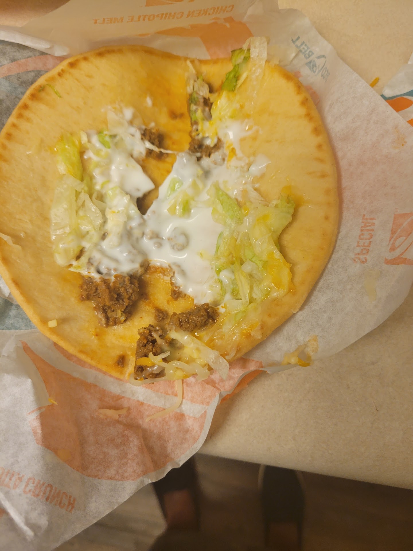 Read moreHad a pregnancy craving for taco bell on my way home from work on my birthday so I stopped at the one nearest where I live. Ordered 3 of the Deluxe Cravings boxes for my family. 2 were supposed to be with steak and 1 with ground beef. All 3 ended up being steak, which I didn't figure out until I got home and tried to sort them out but not a huge deal. I pulled around to pay and handed the guy at the window 2 twenties ($40) he counted out my change and handed it out but I was pretty sure he short changed me so I asked for my receipt. He handed it out and sure enough shorted me a dollar. I explained that to him and he called the manager up to get me my correct change. Shortly after, the food was handed out. I got home and discovered that not only was one of my chalupas not ground beef but that when I went to eat my beefy 5 layer, there was a hair wrapped up in the end with cheese hanging off it. Seeing that turned me off to eating entirely and I didn't feel like I could let my family eat theirs either. Nearly $30 of food wasted. We have stopped eating out much with the cost of everything rising, but it was my birthday and so we splurged on food. Regretting everything about my...
