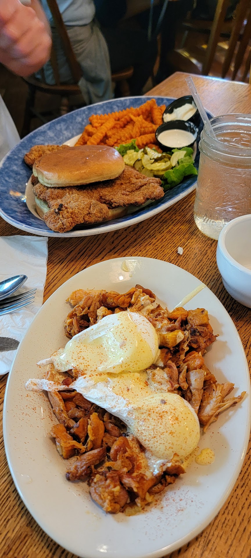 If you're lucky enough to find this gem, and you live an hour away, IT'S WORTH THE DRIVE! We were greeted by one of the owners Mary (mind you it's very busy and maybe about 1130am), wait wasn't too terrible, plus it was building up our suspense to say the least, we were called then seated by Mary who told us both breakfast and lunch are available and Laci would be our waitress (who was spectacular btw!) Photos entail a tenderloin sandwich with sub sweet potato fried (upcharge $1), and I got the infamous smoked chicken/sweet potatoes Benedict. Smaller portion than i expected but it filled me up just perfectly and not so overbearingly full. Eggs were cooked perfectly (for me at least, exactly how I wanted them). I didn't really see or taste a whole lot of caramelized onions, kinda short on the hollandaise sauce, I did request more (upcharge $2) but let me tell you what, it is hard to find a good hollandaise sauce, and I was incredibly impressed with theirs and had to ask for morr! Sweet taters were amazing with this benedict. The tenderloin tasted super good (gotta have ranch naturally) š even tho it's about an hour away, and even with my minor discrepancies with the dish, they'd still get 6 stars+ if I could grant them. Hospitality and great tasting food was top notch, the whole place ran like a well oiled machine even with what appeared to be chaos on account of how busy it was! So glad we made the drive, met one of the owners and had Laci as our waitress! Will...