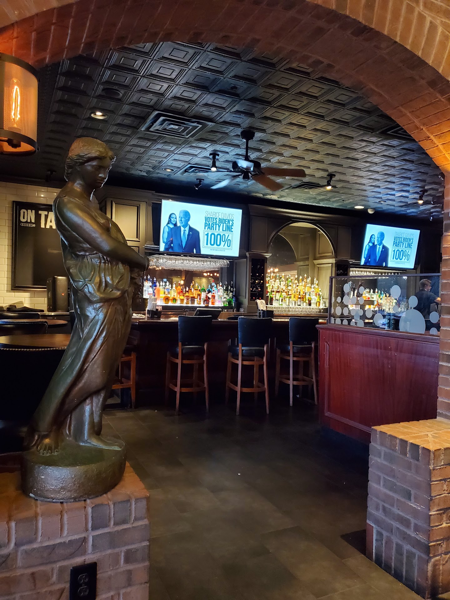 When the order was brought to the front the lady wasn't pleasant, didn't smile and didn't thank us for our business. She directed me to the bar to pay. When I went to the bar to pay the bartender Aspen was flirting with a guy at the end of the bar and putting up liquor bottles. She saw me numerous times in the at least 10 minutes I waited and never acknowledged me standing there. I happen to turn around and see another man who was waiting on his food paying for his order at the hostess desk where he received the food and was instantly infuriated. The restaurant wasn't busy at all, by the way.