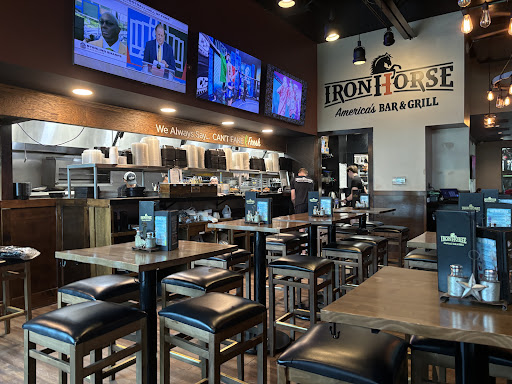 The ambiance fits a western style bar & grill in addition the entire complex is called Iron Horse. There's also plenty of TVs throughout the inside dining area.