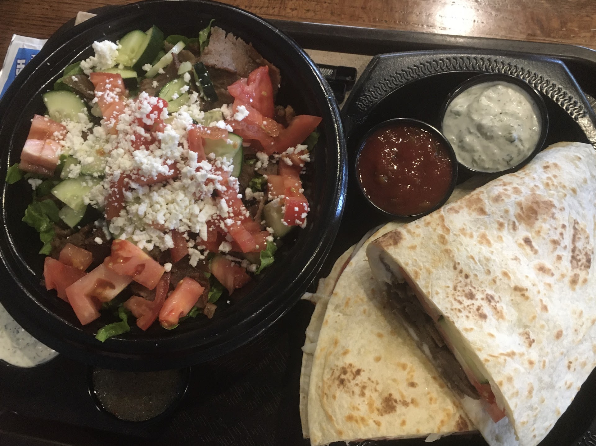 Read moreEh. Pretty expensive now and portions dropped. Very plain. Can't keep workers for more than 3 weeks. Peppercinis taste like kalamto olives. $18+ for a gyro, drink, and small salad... while you're right next door to Joe's KC? It is no wonder why your store is a ghost town outside of 4 total hours the entire week.