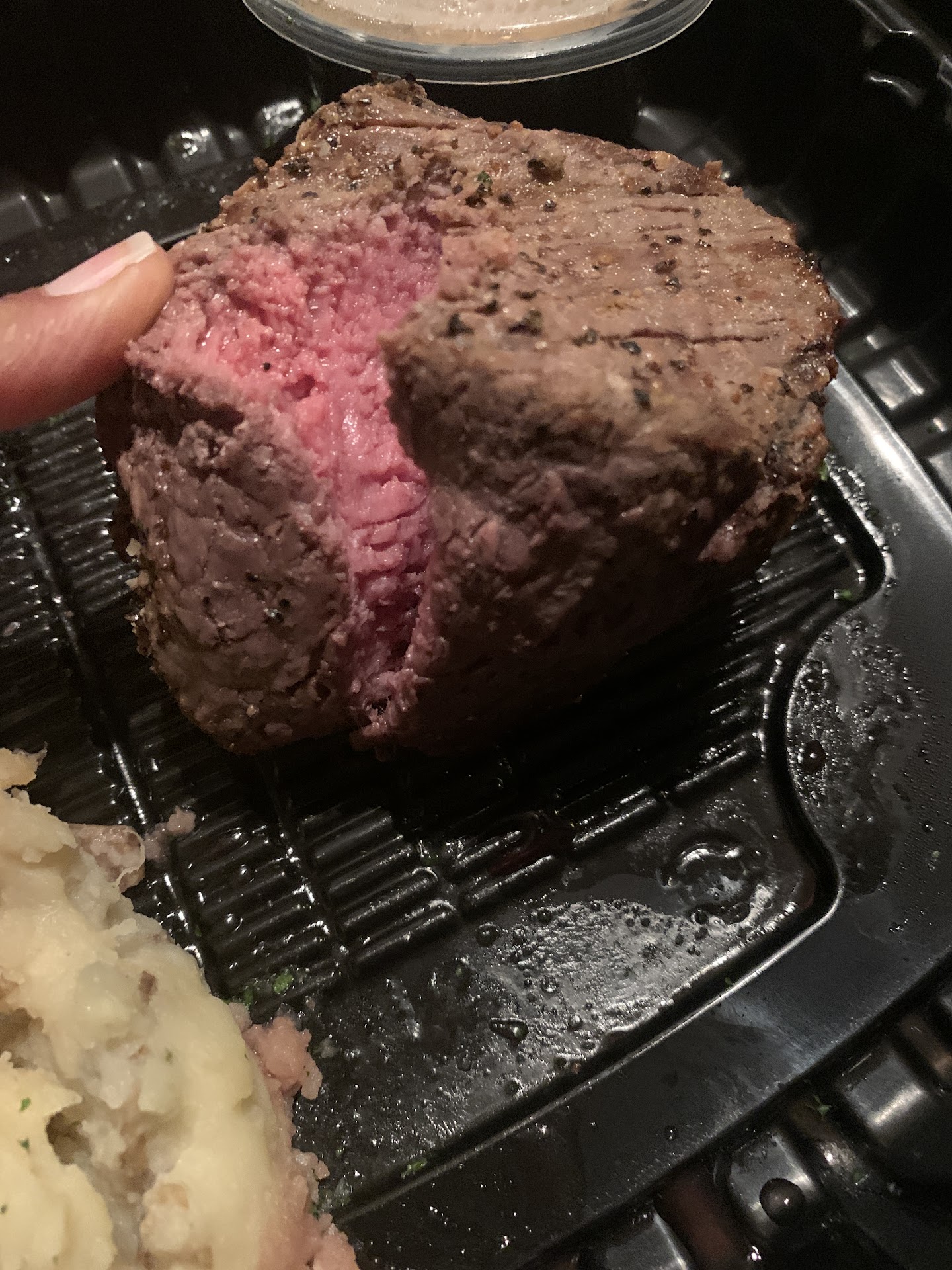 The porterhouse steak although was better than the tomahawk, it still wasn’t cooked medium rare. It came out rare. It was a little better seasoned but we had better steaks on the grill at home.