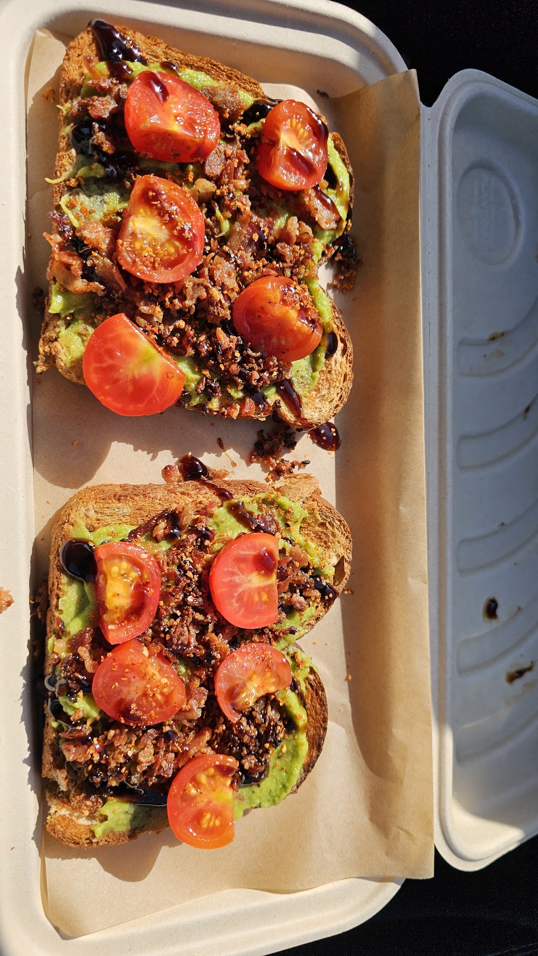 I had the avocado toast topped with cherry tomatoes and crispy bacon, and it was honestly perfect. The bread was just the right amount of crunchy, the avocado was creamy, and the flavors balanced so well together.
