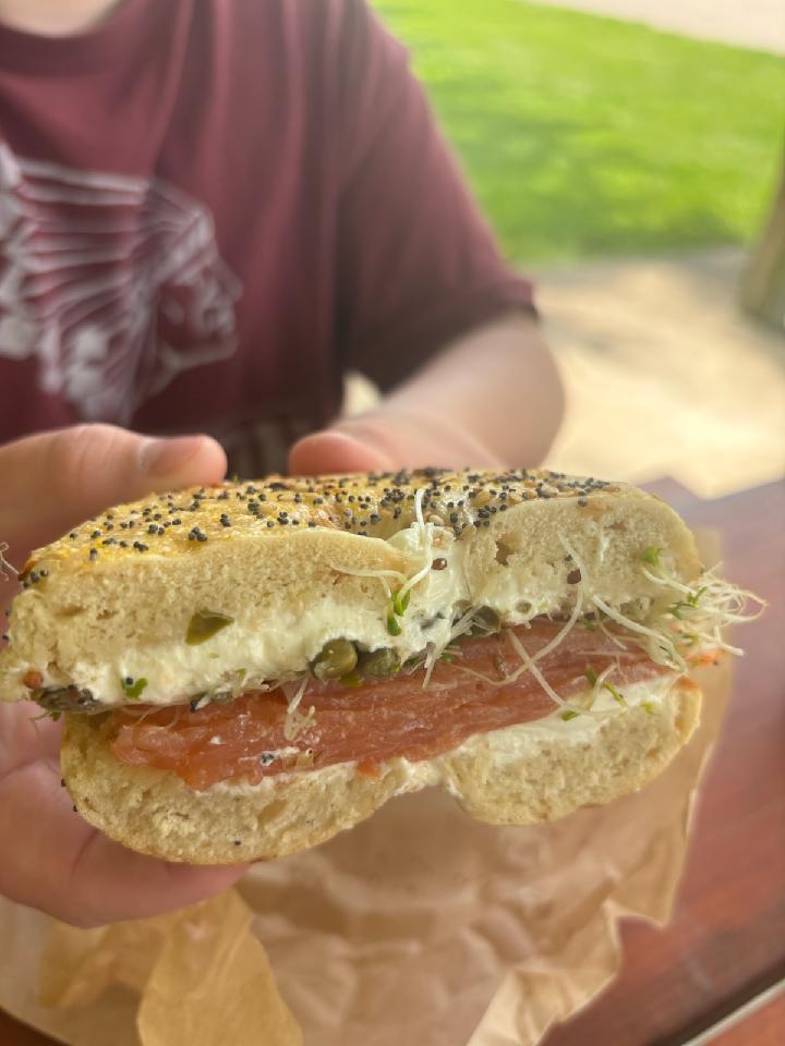 They offer a wide variety of bagels and spreads, along with some pre-made special bagel sandwiches. I ordered the Lox Smoked Bagelâwith salmon, cream cheese, red onion, and capers. Personally, Iâd recommend skipping the capers (they add a sour taste) and adding sprouts insteadâit made the whole thing feel fresher and healthier. Still, it was delicious.
