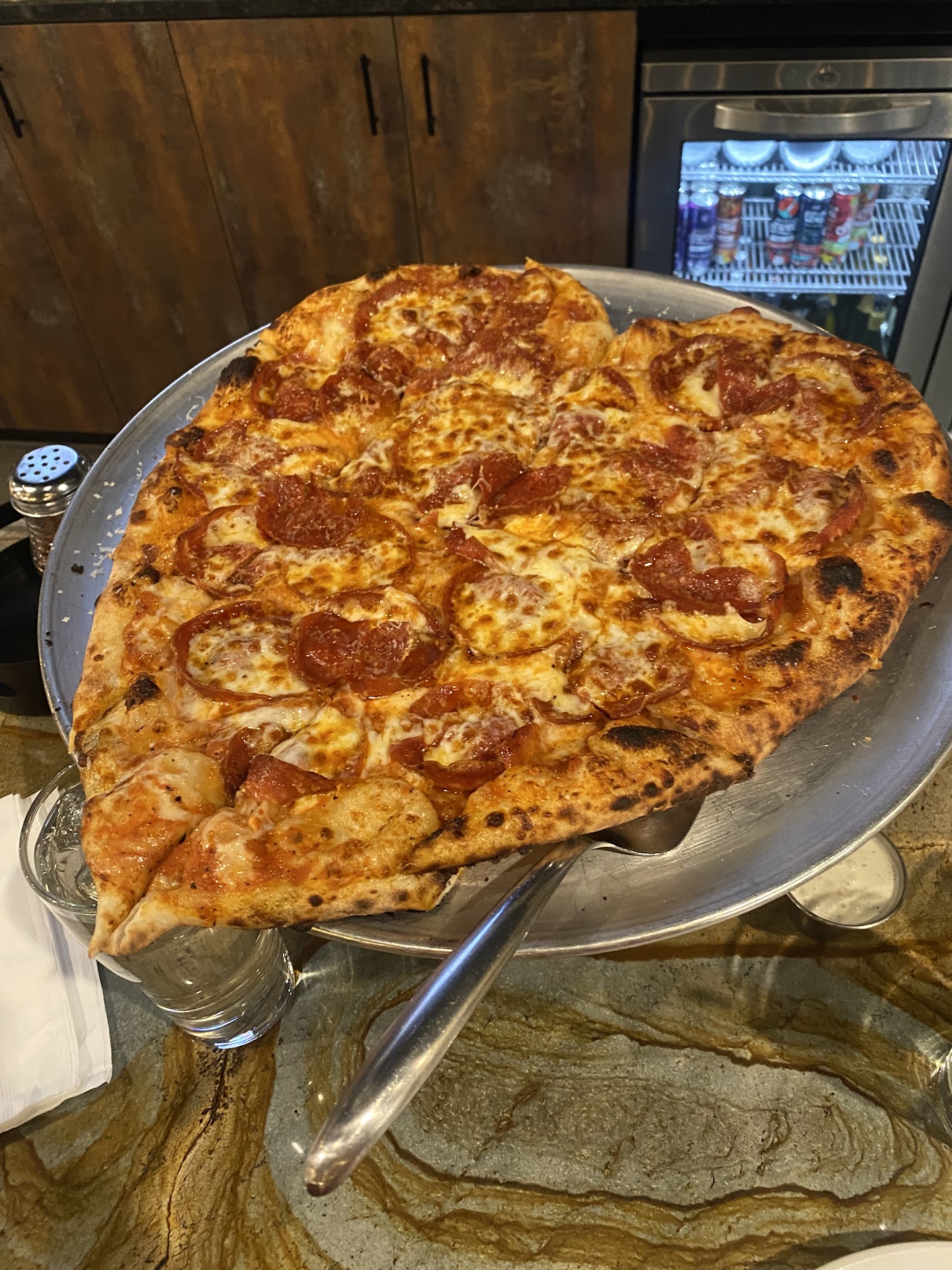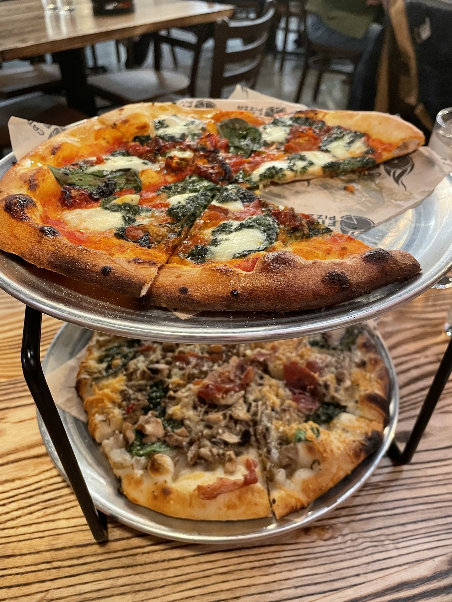 Another thing that really stood out to me was the atmosphere. It’s honestly kind of fancy for a pizza place, which I think is so unique and cool. It’s not just your average hole-in-the-wall pizza joint — it has a nice, upscale but still casual vibe, and it’s the perfect spot for a date night, family dinner, or even a casual hangout with friends. Definitely a huge plus in my book.