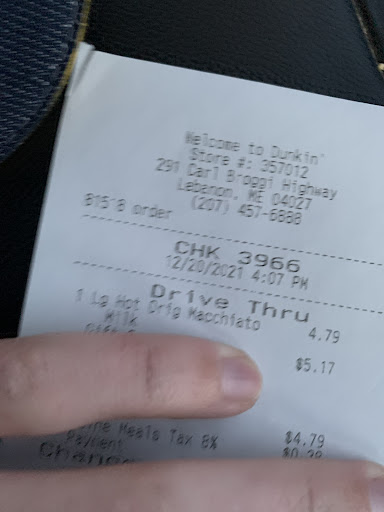 Read moreThe experience i had this morning at the lebanon dunkin donuts in maine was less than stellar. It was very unprofessional. I drive for uber eats, I was there to pick up an order for a customer who ordered online. I arrived at the store at 10:23 the order was supposed to be ready by 10:29, I stood there for 25 minutes after I asked about the order. An employee asked what I was waiting on and I politely answered. Another female employee told the other employee that it would be a few minutes as door dash is not priority. I responded to her mumbling under her breath that statement that I was not rushing her. This employee purposely kept skipping making the uber order until she emptied the store. So customers that order online are not a property to this establishment? This customer had to wait over an hour to receive his order because she felt door dash and uber orders are not priority! This was very unprofessional of her especially saying that stuff with a store full of customers. I don't have names of employee as none...