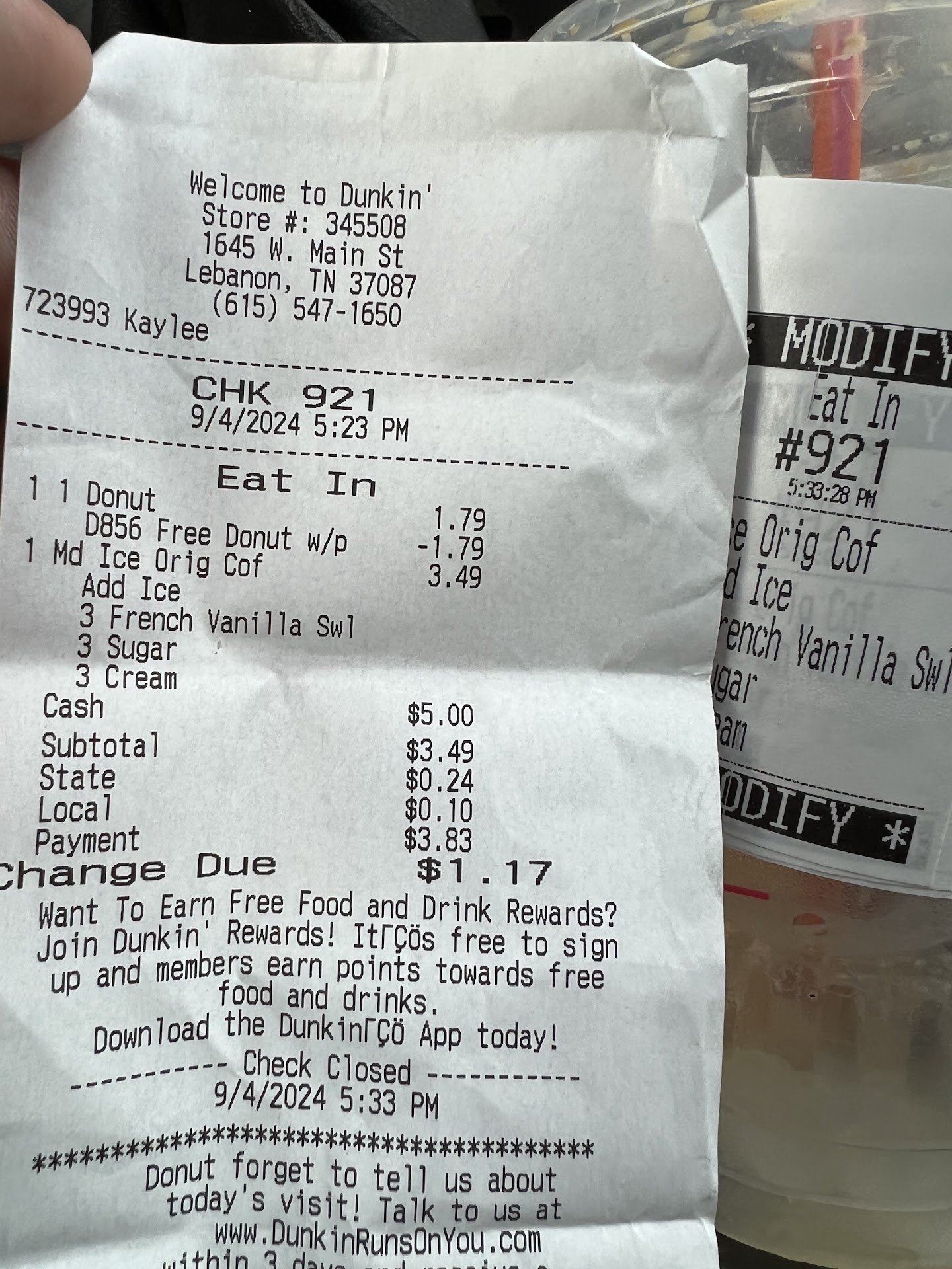 Read moreThe rating would be closer to a 2.5. This location is among the most inconsistent of the DDs I’ve frequented in the past - and I come here almost every day. They get my order wrong at least 70% of the time. Either they mess up my drink (a very simple drink) or they forget or don’t read the order to the fullest and always forget the food. I don’t even bother with doordash with them anymore because 100% of the time, the order is wrong. The employee turnover is ridiculously high. Whoever is working is either super disengaged, careless, or outright rude. I’ve questioned a couple of workers in the past several times when they get my drink wrong and they keep insisting they got my order correct. I had to tell them I’ve been coming here a lot longer than they’ve even been employed there so I’ve basically memorized their menu. There are a couple who are rock stars - they read the order completely, make the drinks perfectly, and are so friendly and sweet. Unfortunately (and fortunately for them maybe), they seems to move on quickly as well.