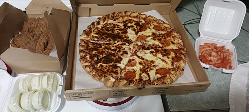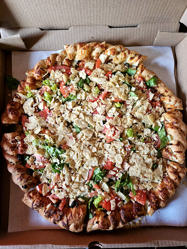 Pizza was pretty good, but would have been better if it was fresh and hot. The toppings were spread somewhat haphazardly, but not the worst I've had.