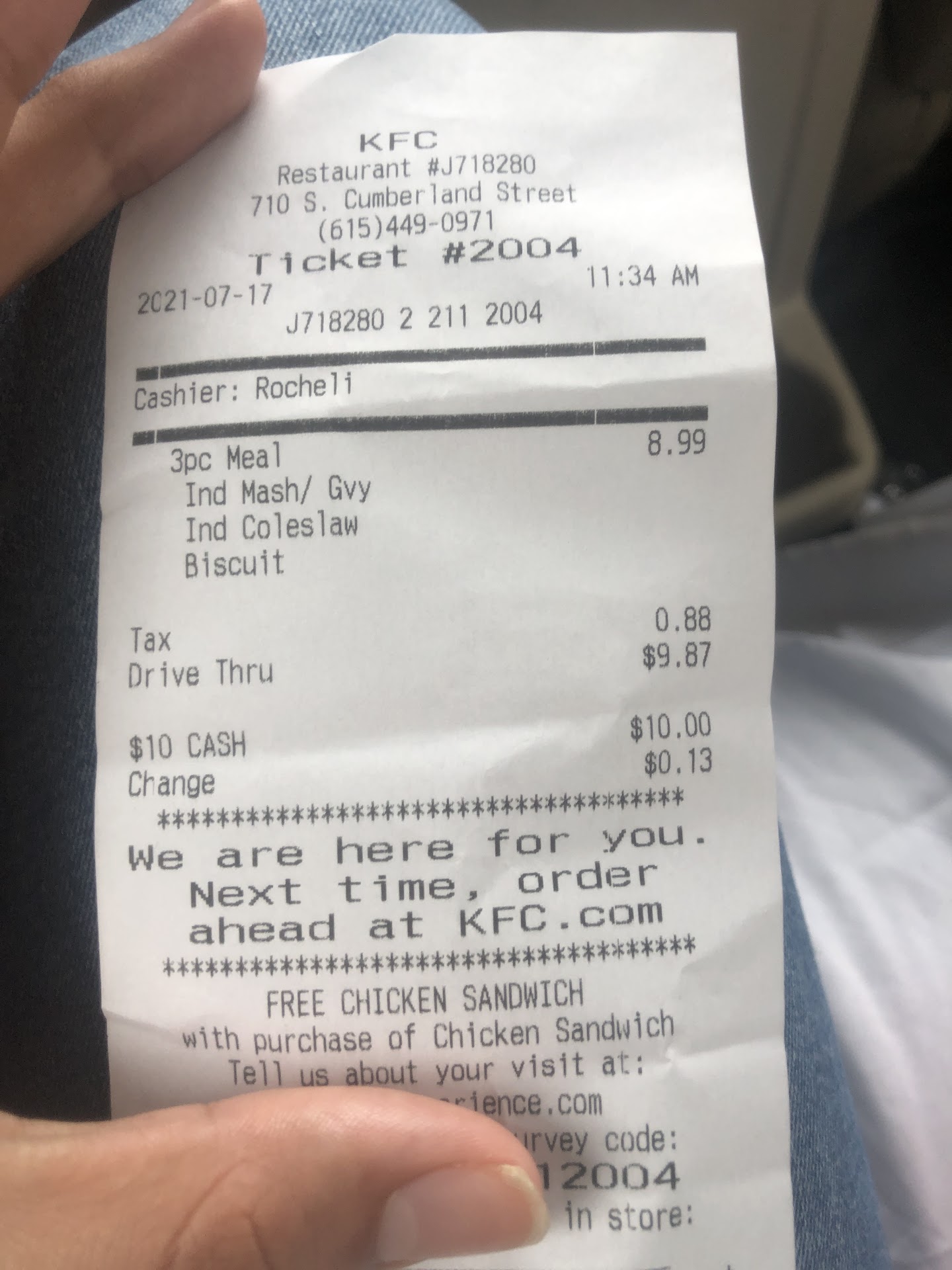 Read moreNever has any chicken ready of any type at lunch or dinner. On average, its a 15 min + wait period. Today I was in line behind 3 cars, there was a car waiting at the window for an order to come out. The line wasn't moving, it was just after 6 pm. One car ahead got frustrated and pulled out of line, finally the car ahead moved to the pay window. I never saw her pay, instead, an employee brought out a piece of chicken in his fingers(no gloves) to give to the lady driving, to feed the dog. They chatted for nearly five minutes before giving her a sandwich which she ate while chatting to the employees before driving off. I pull up to pay, the employee has her back to me texting on her phone. After 5 minutes, she turns and asked what I ordered, never looked at the computer. She discovered the car ahead had driven off, when I told her what I ordered, they had no clue. I had ordered a four piece, no sides with one additional thigh, original price was $11 but with no sides and one extra piece it came to $15.02. They never checked it, just gave me only four pieces with two mash potatoes, I pulled off to check the oder, it was completely wrong, over charged, and for sure I was pissed spending 30 for the wrong order while they socialized on phones and with family! Great job Pepsico, high priced...