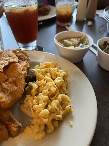Me and my family wanted some good old fashion soul food. We drove from Nashville 30 MINUTE drive or so. I particularly wanted carbs before I started back on my Keto. After reading reviews I said we have to go. Well it was bitter sweet. They ran out of a lot of food items. NO GREENS UGGGH REALLY 😩 Not to mention the attack of flies that wouldn't leave us alone. GROSS😣 The server was sweet she was a Caucasian lady with glasses. I asked about sweet tea she said it was only 1 cup left. So I decided on a diet coke. Yuk no carbonation. After taking a better look at the drink list I noticed they had fruit tea. Hmmm why didn't she just say the sweet tea was out however offer me fruit tea. No worries the fruit tea was remarkable. Some of the best fruit tea I have ever had. Not to sweet either. It was delicious. THE FOOD I ordered: The meatloaf YUK the meat was cold. So they offered me fried chicken. Omg AMAZING. I also had cabbage WHEWWW TOO MUCH SALT. I didn't eat it. The Mac N Cheese was just ok. Nothing spectacular. My husbands loved the pinto beans. My son enjoyed the chicken as well. I would of preferred to eat at Arnold's or Silver Sams but wanted the best Soul food. This was way overrated. I'm a foodie I know good food. I come from a line of Black Grandmas soul cooking. Maybe it was just the wrong day. I will only stop by if I'm in that area. I was so disappointed. The chicken and fruit tea was...