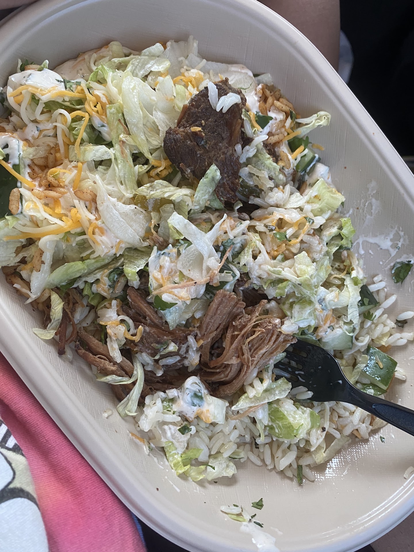 They have two kinds of chicken, ground beef, pulled pork, bacon, steak, tofu and vegetables. If you love guacamole, you can either pay an exorbitant amount for it (~$2.50), or get their Homewrecker, which includes it for an additional $.80. You choose what you want and you can ask for extra.
