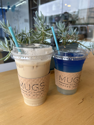Read moreI’ve been to a lot of coffee shops in a lot of places, and Mugs is easily one of the greatest coffee shops I’ve ever been to. The coffee is amazing, the staff is friendly, and the art and decor give it a cheery and funky vibe. My coffee was a high-quality roast, my wife’s latte was perfectly sweetened with a house-made lavender syrup, and m daughter’s berry bagel was perfectly sweetened and toasted. In addition to the cool art and furnishings, they feature a collection of games, including a tabletop air hockey table that kept us entertained for quite a while! If I lived in the area, I would be here every day! Can’t...