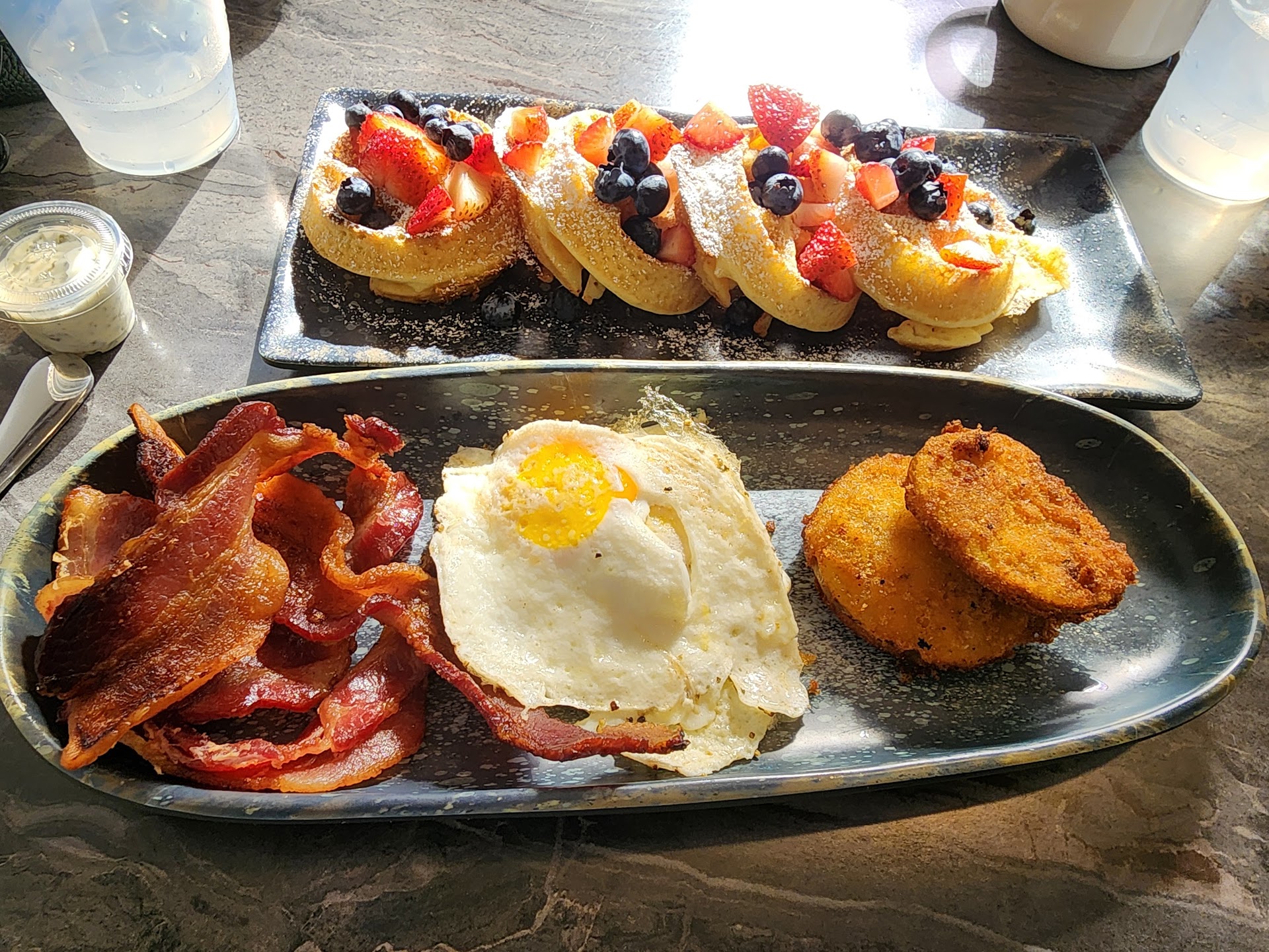 Read moreWonderful food and terrific people! So glad I saw this place advertised on Facebook. Took everyone’s advice and stopped by Off the Square today. Fabulous service, friendly people and delicious food. Bonus treat was Donna Frost music. The waffles were yummy, didn’t even need syrup. Sautéed veggies were perfect. The spicy breakfast sausage was not to miss if you are a...