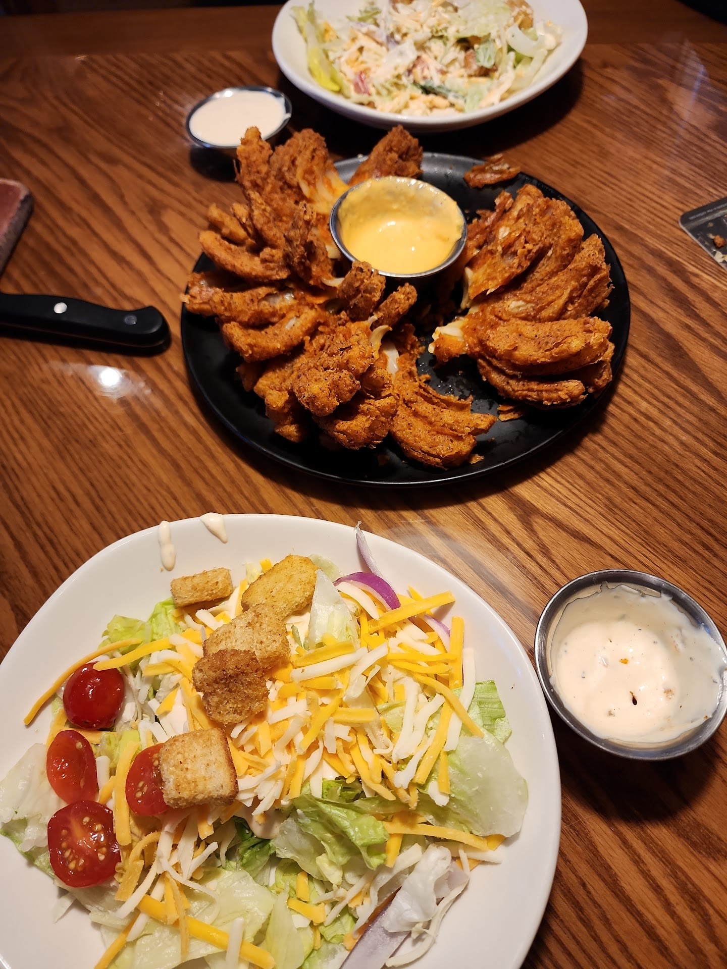 We were finally sat at 10 after three. Our server was faith. She took our orders. We received our drinks and appetizers in a short period of time we took our order in which we explained how our checks would be divvy up. Our server didnât return. Other servers dropped off our salads. Other servers dropped off our drinks. But after we ordered, we did not see our server again until after our food was delivered. We could not even finish our meals after they came because we never got another refill. When, she came by we were nearly finished with our plates. She asked us what we were drinking in which a few minutes later, a different server brought us our drinks out. By then we were entirely finished with our plates and needed boxes when we got boxes she brought out a pen and pad and asked each one of us exactly what our order and drink was, and had to REWRITE it all down to go and divvy up the checks. Which I thought was very amateur, and I didnât understand since we explained in the beginning how our checks would be. It felt like ordering twice. It was really ridiculous. After she wrote it down on pen and paper, she still got my check wrong and mixed up my husbandâs food with someone else in the party. And I ended up just paying more because I didnât wanna wait for our checks to have to be re-printed and everything to be moved around again. (She did offer to fix the check) We tipped our server sufficiently (20%) because anlmost everyone at that table works at a restaurant, which also causes us to be a little more patient. But I can tell you as a whole that we will not be back. I took pictures of the plates we ordered our steaks, medium, rare of which they were medium well. But because of the time situation, no one wanted to wait and they did have flavor. So we didnât say a word and just ate. I know working on Motherâs Day is stressful but when you have a party being extremely patient, maybe you should be patient as wellâŠâŠ