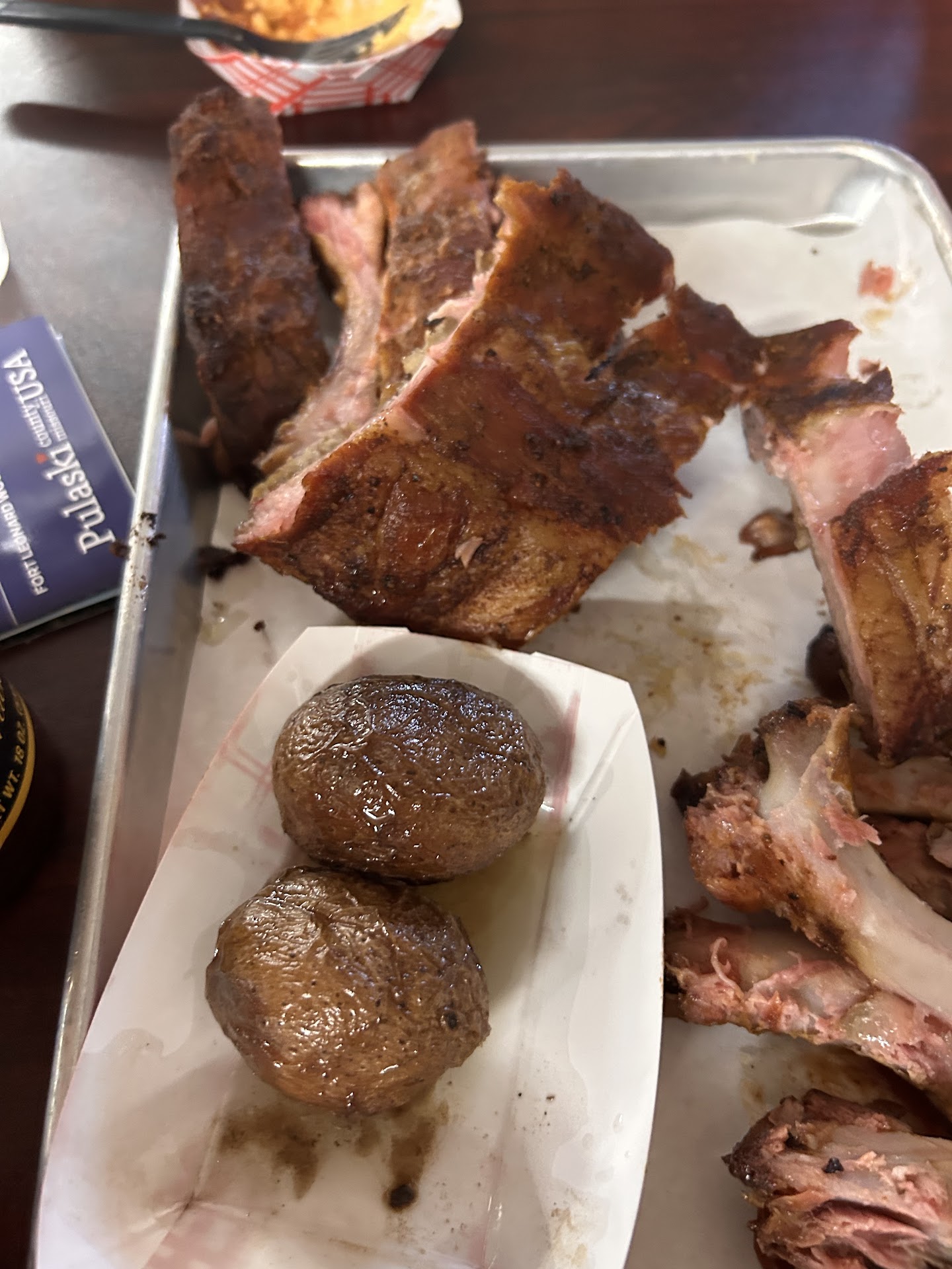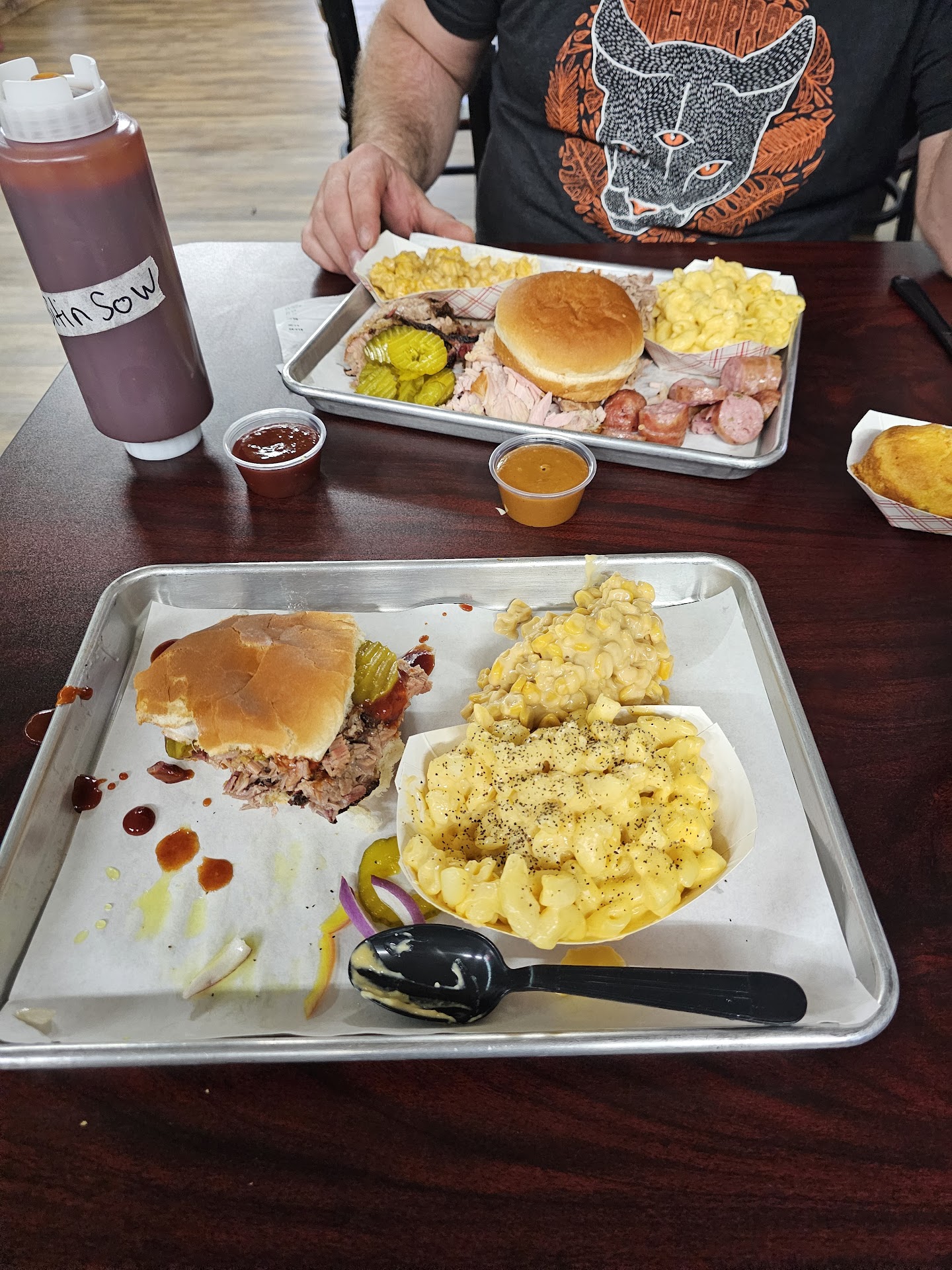 Read moreStopped while traveling through. GREAT food. I had the ribs hubby had pulled pork. Both were very good. 3 different sauces heat, middle of the road and mild. All very good. Large side portions meat also on thevlarge side. You walk in and order at the counter take your food to a table and help yourself to a drink. Nice çold fashion" atmosphere. Very clean. Would definitely stop here again if in the area. We had a late lunch and thete were several locals there who were greeted by name, so obviously...
