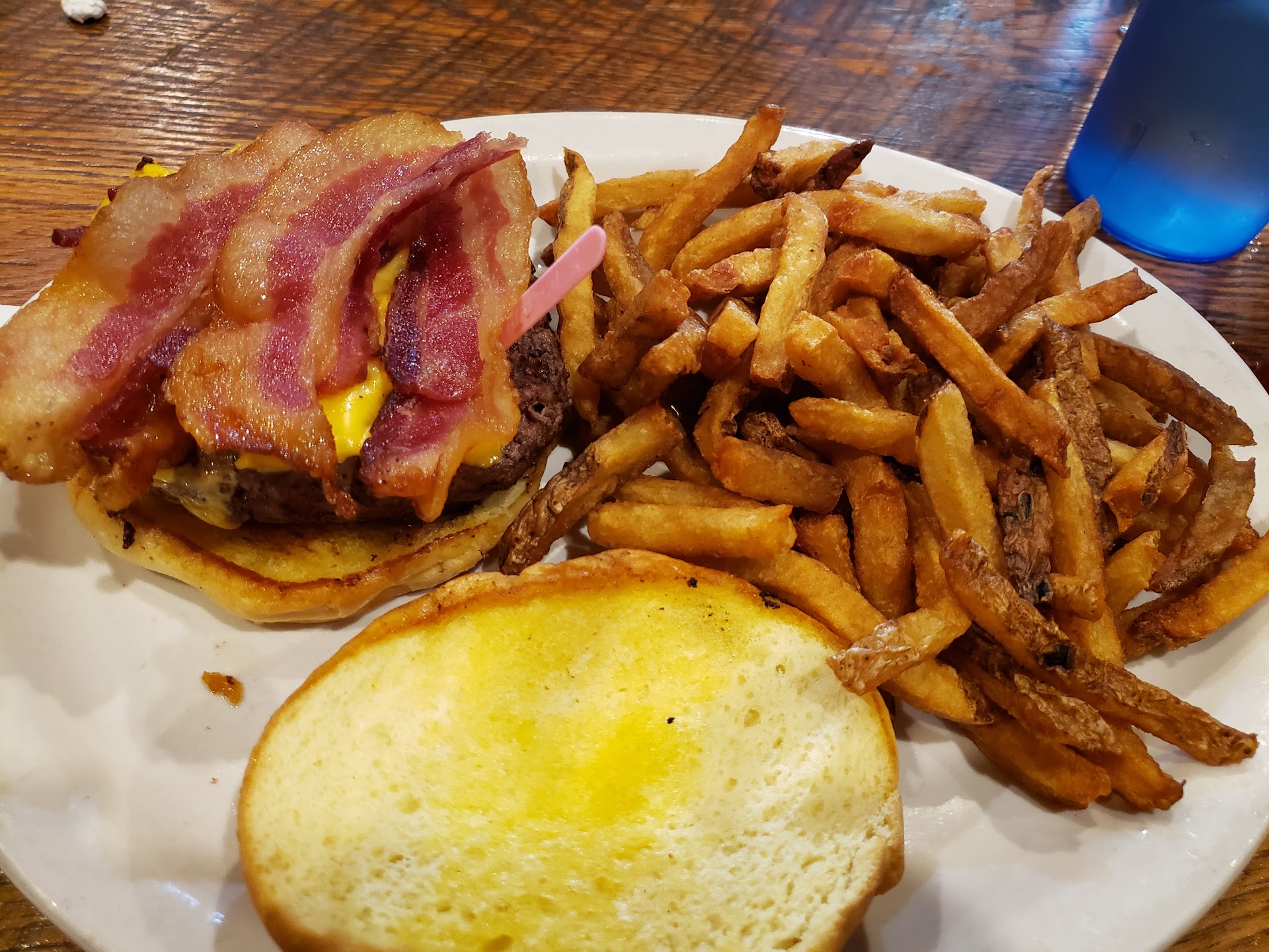 Read moreWe (a group of 9) stopped around dinner time 6-28-2025, after a long day of hiking. We are hot, tired, and hungry. We figured a big, delicious, juicy burger would finish off the day very well. Well, it would have if we had gone some place else. As we were being seated, we were greeted with a disgusting stench of cigarettes. I didn’t see any patrons smoking at their tables, so it must have been the staff smoking in the kitchen or backroom. My husband came home with a migraine, and the rest of us felt nauseous and had headaches from the cigarette smoke, which continued until the next day. We had ice water with a slice of lemon for our drinks. The water tasted how swamp water smells. Gross! Everything was sticky and felt grimy… the floors, the tables, chairs, even the condiment containers. The food: we all ordered burgers. They were large, and that’s about the only good thing about them. They were flavorless. My husband had “The Ex”. It claims to be spicy. He said there was no spice to it at all. For $16/ burger we expect to be wowed with flavor. T’s failed that. There wasn’t consistency in the burgers either. All the burgers ordered were 1/2lb, which was a good size, however, some were a full 1/2lb patty, while others were two 1/4lb patties. Why the difference? I ordered a side of brown gravy (I like to dip my fries in it). The gravy was barely warm, and resembled day-old rubbery pudding… just a thick glob of brown goo. Gross! $140+ for a mediocre meal in a nasty environment is not our idea of a good end to a fun day. The only way to improve this experience is to receive a...