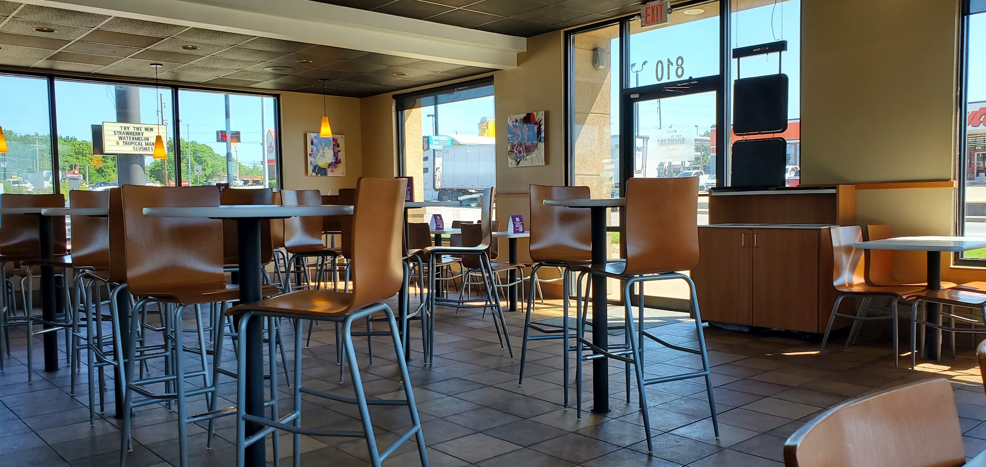 We went ahead and ordered our food and sat down. We had our choice of seats since we were the only people in the restaurant at 7pm in the evening. I could see McDonalds right next to Taco Bell and it was one car right after another. I thought to myself I should have paid more attention to where the cars were going.
