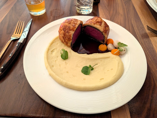 The beef wellington comes medium-rare and I asked if it could be cooked longer as I didn't like my meat undercooked. She said no but I was welcome to try it and if I didn't like it, I could get something else. I was a bit shocked that they don't allow you to order it how you want it but gave it a shot. And, as predicted, didn't like it but it also looked like it was VERY rare rather than a medium-rare. I again asked if they could just cook a bit longer and, again, told no. So I ordered a filet instead cooked medium-well and it was OK but nothing to write home about. I think it's just wasteful that rather than cooking it the way you want it, they'll throw away a piece of meat and cook another (different) meat how you want it. Makes no sense.