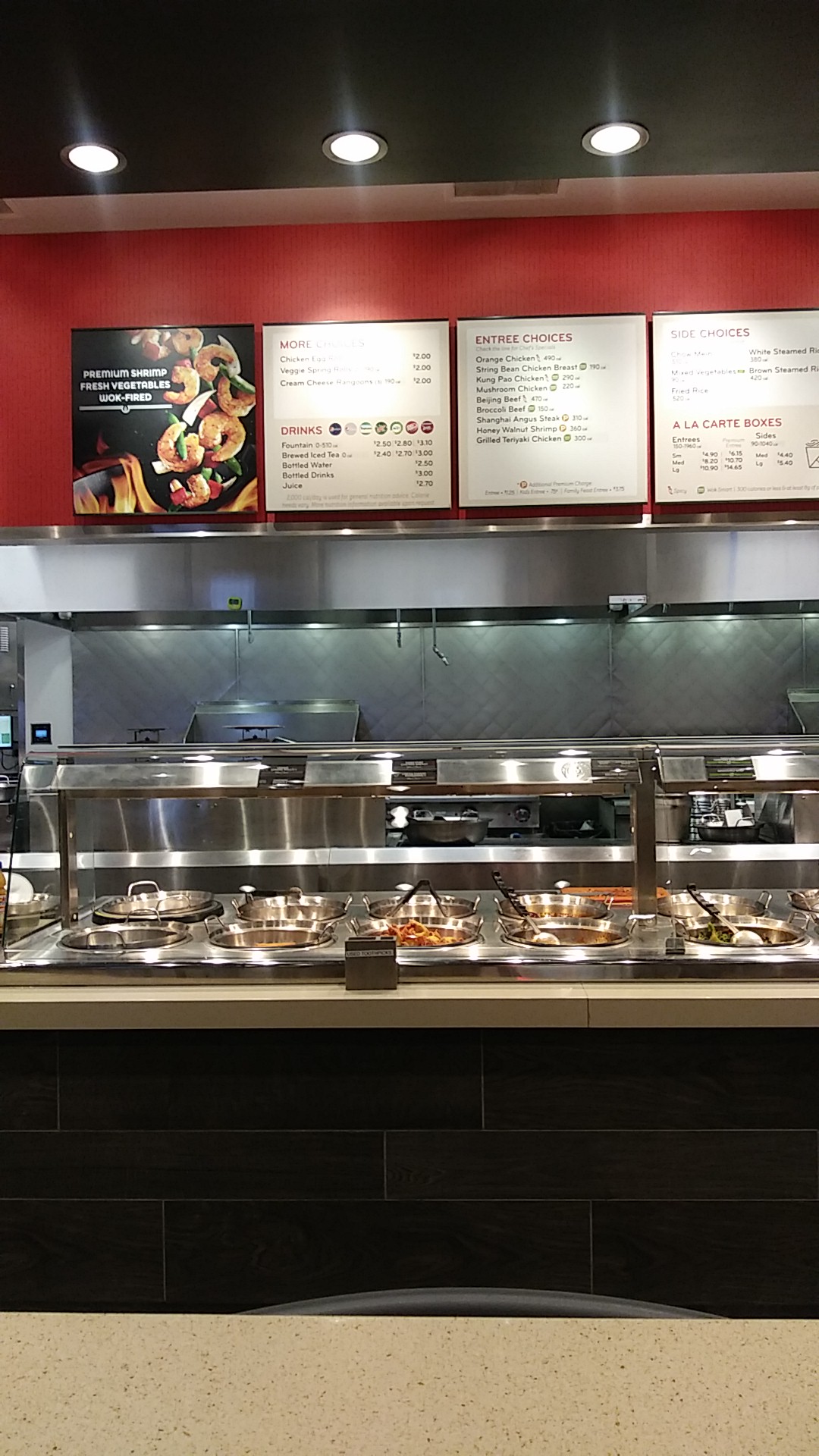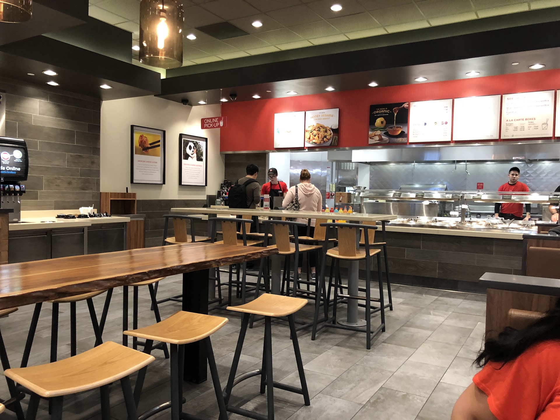 The food is typical Panda, but it was cooked perfectly. Sweetfire chicken and teriyaki chicken with white rice. I was worried my toddler was going to get sick with how much he LOVED the teriyaki and rice. He also loved the apple chips and fortune cookie. Good fountain drink selection including the basics plus fruit punch and Sobe Lifewater.