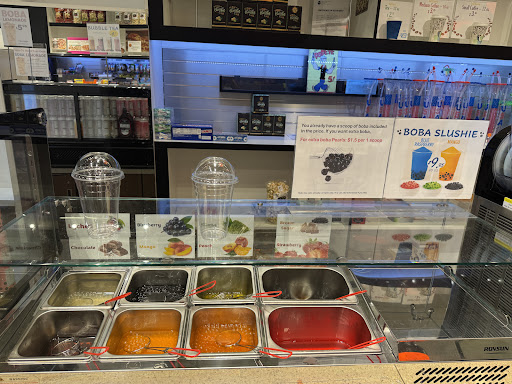 There is a good assortment of boba pearl flavors. You get a good size scoop included in the price and can add another scoop for $1.50. The slushie flavors available were blue raspberry & mango, with an empty space for another option. I’m allergic to mango and not the biggest fan of blue raz, so I didn’t get one for myself, which was ok. A basic strawberry or cherry would be a good addition.
