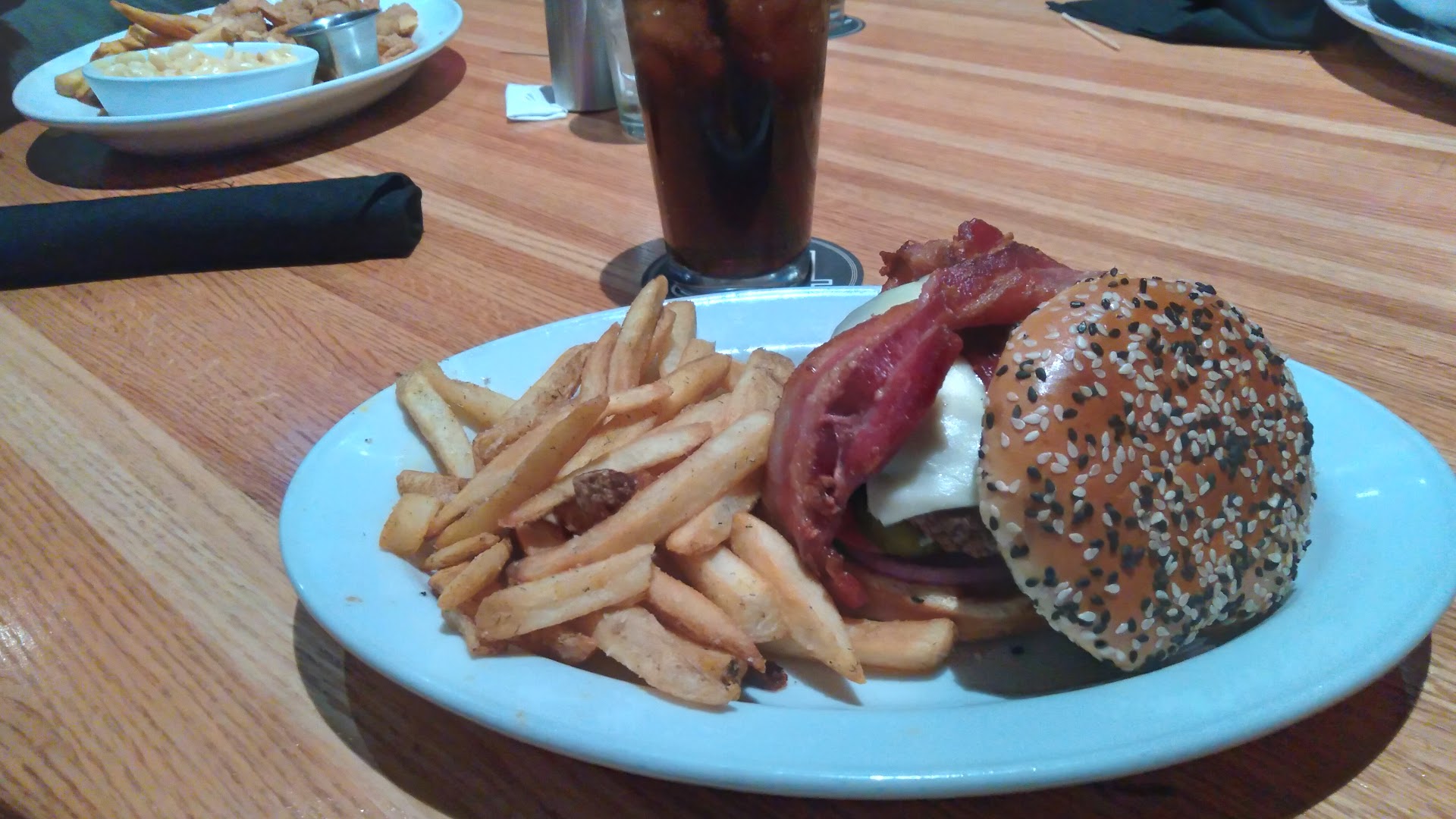 The food was excellent but the customer service from the time my party and I walked in was horrible! The hostess' unsmiling face and standoffish deamenor immediately made me feel unwelcome. Myself and another member of our party asked if other parties had arrived, to which the response was "we don't take names. Yet immediately after we sat down a Caucasian couple walked in to ask if their party had arrived, they gave the name of the party and immediately were taken to their table. The remaining members of our party arrived and there were several empty booths but we were advised that we could have a seat at the bar. We noticed there were open tables on the terrace and asked if we could take those seats since there were a couple of people in our party with disabilities that made it hard to sit at the bar. We were told the tables would be cleaned and ready In 5 minutes. Some of us sat at the bar for several more minutes, until myself and the birthday girl, politely asked the hostesses when the tables would be cleared. The hostess (still unsmiling and with a horrible attitude) replied that it would be ready in a few minutes. It was not until we decided to go to the patio area,, thst they tables were finally wiped off. Also while sitting at the bar, we saw numerous large parties come in and were seated with no issues. Once seated, we had to approach the bartender instead of our drink orders taken at the table to get a drink. It took another 30 minutes before our food arrived at our table. That was my first and last time eating at 54th Street Bar and Grill in Lee Summit, even those the food was delicious but the customer service was absolutely horrendous!!! You need to teach your hostesses and bartenders customer service 101!!! In closing, I will say the bartender who greeted is at the main bar was...