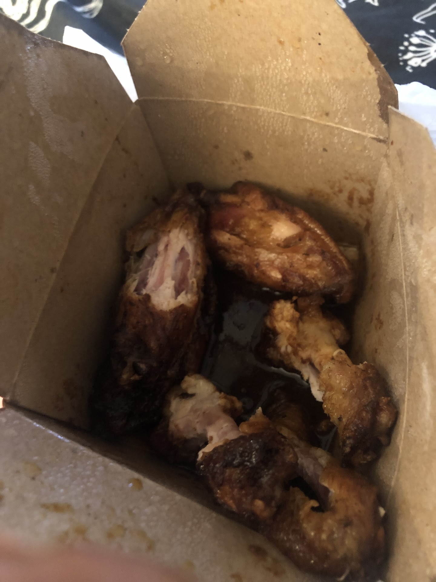 Food Quality In fairness, I won’t deduct points for texture/temperature, as we had to eat our food later. However, the fries were soggy as soon as we opened them on the way to the car. The Brussels sprouts were slightly charred and overly sweet (despite our dietary note), and one entrée was missing. The smoked wings had an impressive smoky depth of flavor, but I cannot fairly evaluate texture of the “smo-fried” preparation since they weren’t eaten right away.