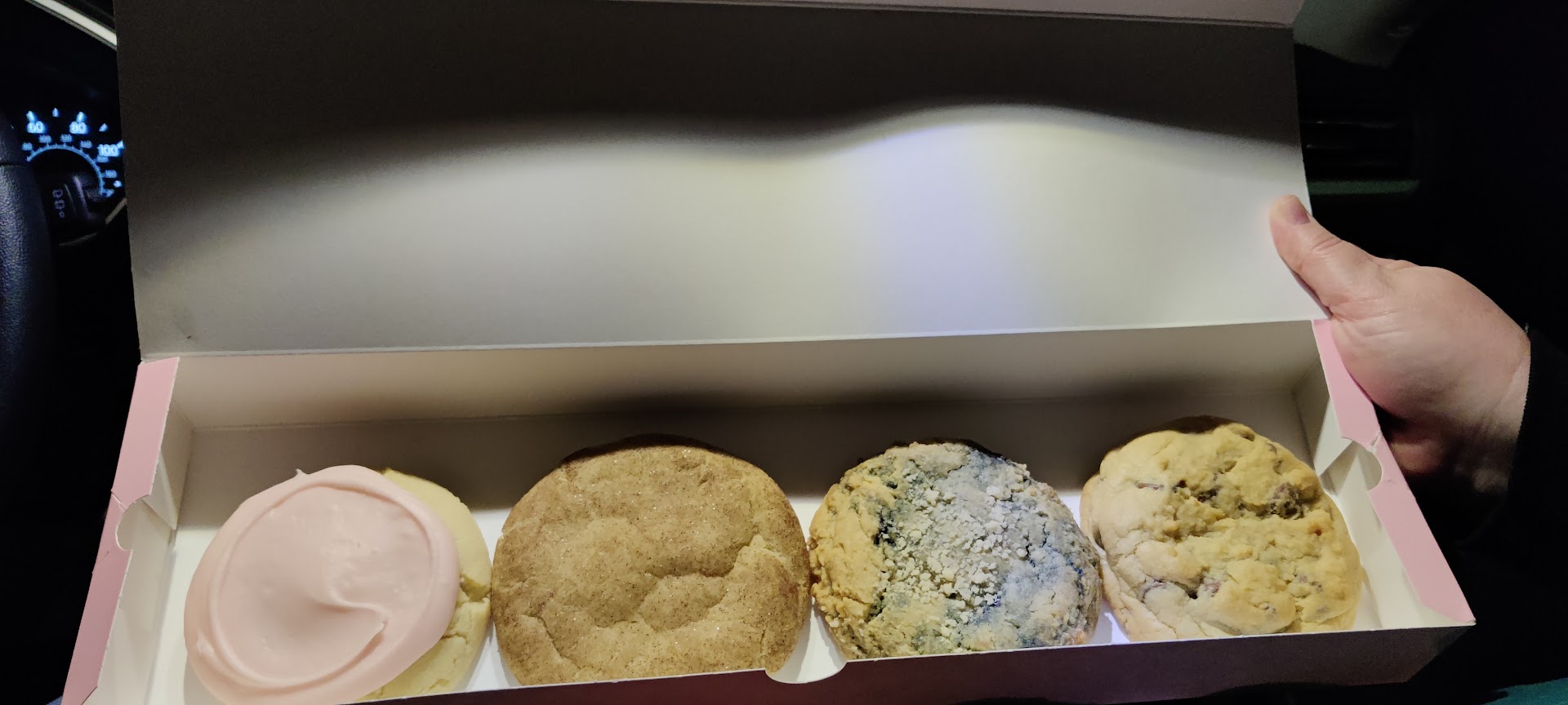 Had Crumbl Cookies for the first time, the other day! I loved how cheery the place is, and they have some unique cookies. They are extremely rich, though, and pretty good size so prepare for either knocking yourself out, getting sugar crazy, or literally only eating like half a cookie at a time. (Also kinda on the pricy side: like, almost $4 for 1 cookie). The ordering process was pretty easy and my order was ready within about a minute or 2 even though there were several people there. When I came forward when they called my name, they opened the box and let me inspect to make sure my order was right. The cookies are laid flat so the boxes get to be rather large but that is okay, because then each cookie gets its own chance to shine without getting squashed or taking on the taste/appearance of the others in the box. You could also look into the kitchen and see them working which is unique. Overall loved the experience and I love that they come out with new flavors every week so you have something to look forward to. Itâs fun to go get for a treat for yourself, surprise someone with, or take someone special on...