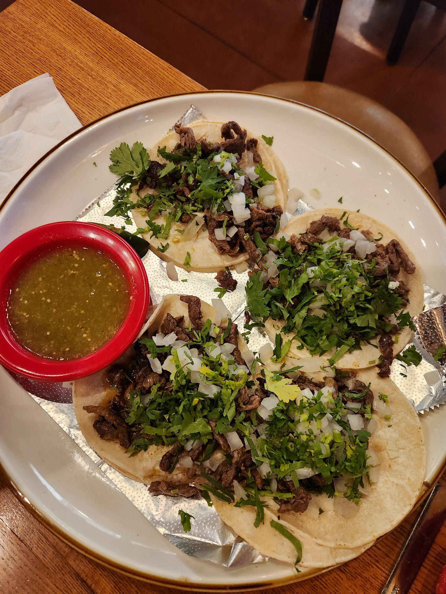 A nice change of pace! We went for an early supper for two. There was ample seating and they served us to a booth immediately. The restaurant is very open and includes a bar that can be seen from the main restaurant area but is separated nicely. The wait staff are well dressed in black and white for the most part. Our waiter brought complimentary chips and house salsa. I've included photos of our meals and the chips and salsa too. The chips are nice and thin, which is a sign of quality to me. I did not care for the mild salsa at all, not enough flavor and the tomatoes are canned stewed tomatoes, I believe. I prefer fresh salsa that is full of flavor from jalapeño peppers, cilantro and onion. There's no such flavor in theirs. We requested a spicy salsa and our waiter came back some bit later with a much hotter sauce which I could appreciate. Our meals were pretty good with real cheese and meats. I ordered a dish that is similar to a mixed fajitas but they called it something else. My husband ordered a taco salad and said it was just his size, I thought it looked rather small personally. It needed more meat and veggies for sure. Our waiter left us the bill but never returned to allow us to pay for it so we paid upon leaving. All in all it was a pleasant experience and I left with a snack for the next day. The restaurant was clean, I think it would benefit from a once a month live entertainment venue one weekend a month. I wish we could give a split between stars/adding a half star to this rating. We will give them our...