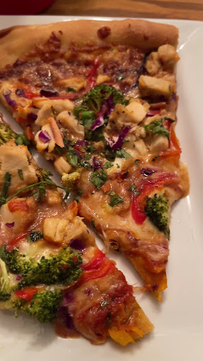 It’s hard to choose a favorite pizza, but we almost always get the Steging. I switch between the Spanakopita, Wild Mushroom, and Heartland. All solid choices, especially when ordered extra crispy. My husband almost always orders a Hard Way, when I have beer, I love the Yoga Pants. If it’s available, I also love the Yes Way Jose. They offer Deep Eddy vodkas, which we order often too.