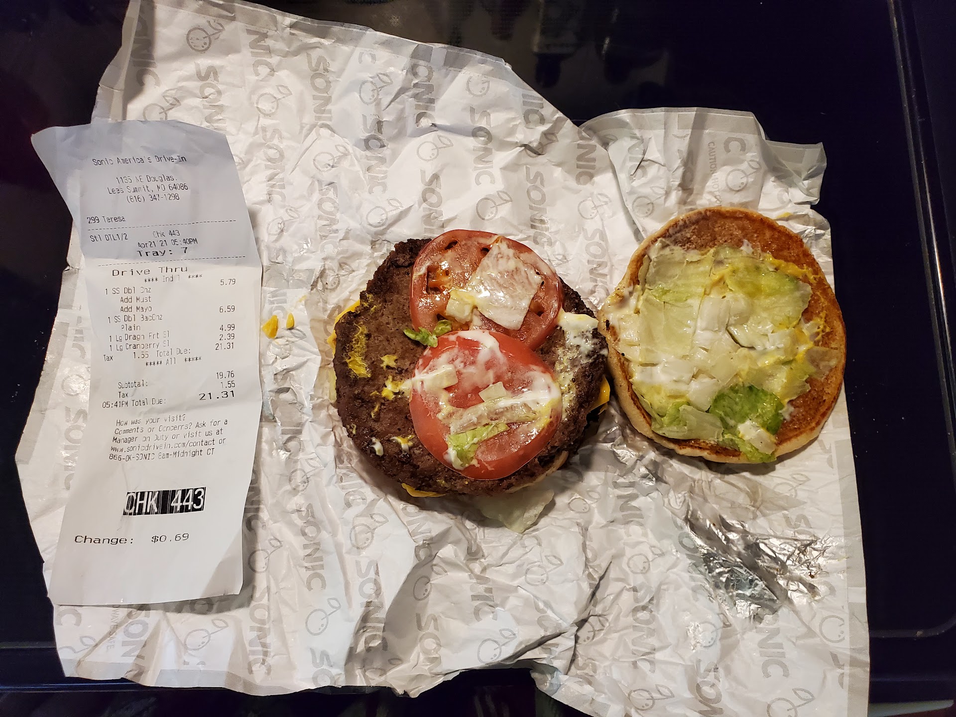 We started off at a car hop vehicle order sign, pressed the button and waited 30 minutes for absolutely no response. It was when we saw a vehicle that we had entered the sonic with leave the drive thru with their food; that we decided to try the drive thru. We get to the drive thru and try to order the King Hawaiian specials But they were out, I can understand that. So we ordered a shake, mozzarella sticks, bacon cheese burger, a cherry limeade onion rings, and a double bacon cheese burger. 15 minutes later we arrived at the drive thru window which is where everything truly headed south.