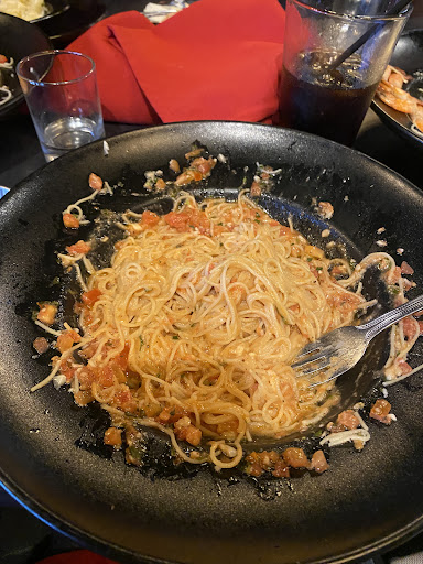 Person #3 ordered an Italian 75. It was good, hit the spot for the warm day we were having. It could have had a bit more lemon to it, maybe in a full lemon slice or something like that. I ordered the Chicken Spiedini with Alfredo and was immediately disappointed to find 6 (basically) chicken tenders on my plate compared to what the menu said- "Marinated Chicken Breast" It was the same listing as what was on the Chicken Parmesan but somehow I didn't get the large piece. Yes, traditionally a Spiedini is a grilled chicken skewer, but we all assumed if it was going to be fried it would just be another chicken breast patty (like the description said). That being said the chicken was delicious, breading was crunchy, meat juicy. The Alfredo left me wanting though, it didn't seem to have a lot of flavor. It was extremely fatting, which is fantastic in an Alfredo, but it needed something more. Maybe extra pepper? Some chopped basil throughout the sauce (compared to a single leaf on top). I have to agree with Person #2 as well that the angel hair just didn't go well with the chicken, it was just too small. My pasta also seemed to be extremely short, like it was broken a few times before boiling. I would likely order a different entree next time.