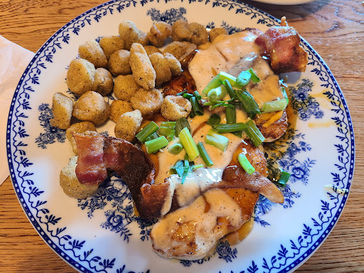 Read moreWOW. Not what we hoped for at all. We needed to relax and enjoy a good meal. Did not happen. The waitress showed up after the girl took us in..mentioned drinks but had her back to us. Then wondered around tables..finally my friend went to a table by the window..had to call to the girl and said, we are sitting here. The waitress was in a hurry but who orders with out looking at what is offered..we asked for time to read it. She came back so fast, repeatedly, finally put up a small menu said when you lay it down, I'll be back! Gave us water and slammed the table. Really? Then a girl sweeping kept smamming the pick up broom..right up to My back and shoulder. I couldn't even talk about the menu to my friend, I glanced over my shoulder and the girl was inches from my face.. slam! On purpose? It gets worse, we ordered. The waitress was done with the order and I made a joke about wanting all of it..waitress with her back to us sarcastic says, yaa, and you Finnaly ! Ordered!! Really. I'm a senior with great hearing.. The burned food was brought, as the pics show, butter didn't have cut edge to bend and open , waitress said it did. No it did not..vision is good too. and I asked for apple butter with order..and didn't get any. 😑 waitress? My friend had chicken burned on edges and too tough to eat..mine, ng. As it gets better, when cashing out she said to cashier in response to being asked, how was it..said she couldn't even cut her chicken, and we were instantly double-teamed, by the clerks arguing with her, also a senior. it just "looks burned"..why didn't you tell waitress! OMG it's our fault now. Really?...