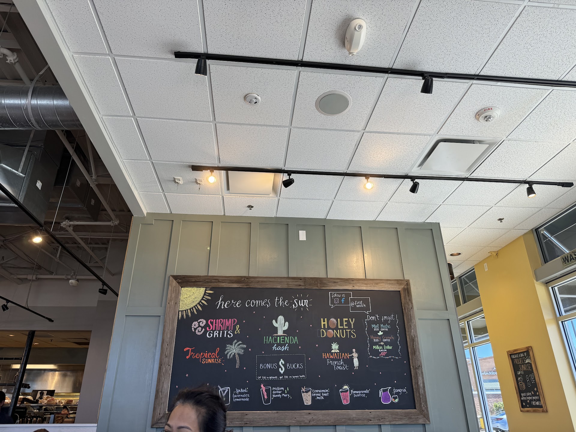 The staff were really friendly and calm, especially during a really busy time. I appreciated the staff's patience while I was a little bit hangry! They were quick and pretty good with the table turnovers as well. The dining area and the tables were all fairly clean even halfway through a busy Sunday morning and a full dining area. The only thing I would've liked was to have been checked on a little sooner after getting our food because I needed my water to be refilled. It took me a couple tries to get our server's attention so I can ask for more water.